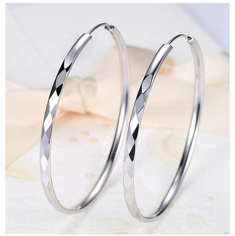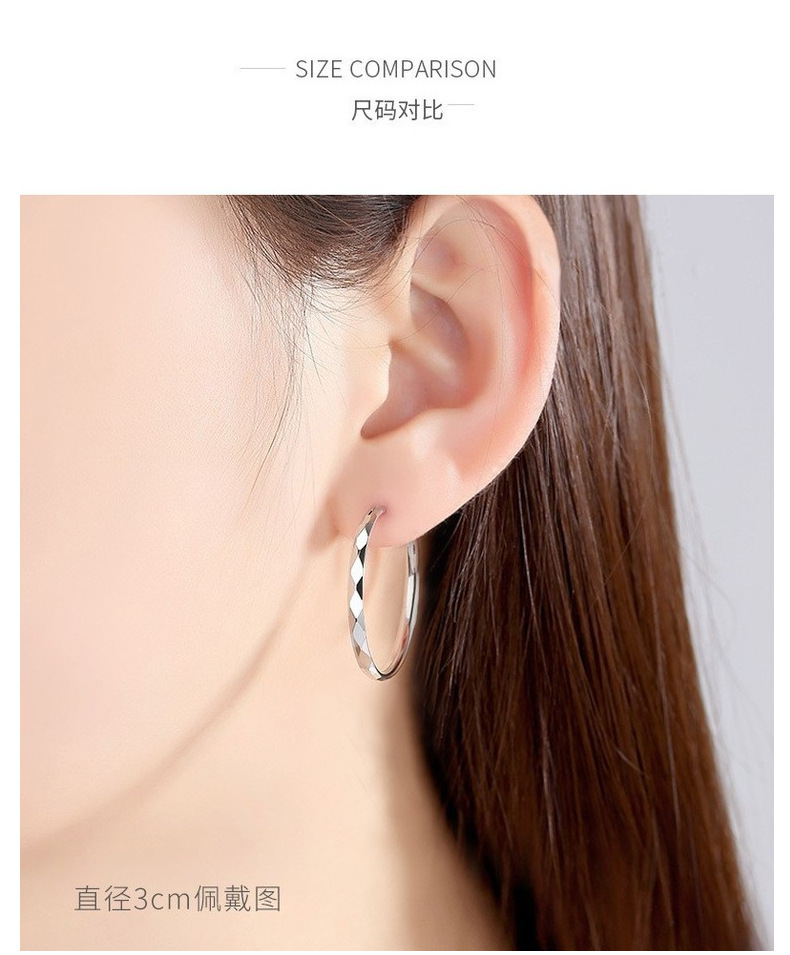 925 Silver Plated Trendy Round Earrings Large Hoops for Women, Internet Celebrity Style, Korean Version, Small Hoops, Large Hoops, Round Face, Elegant, Trendy