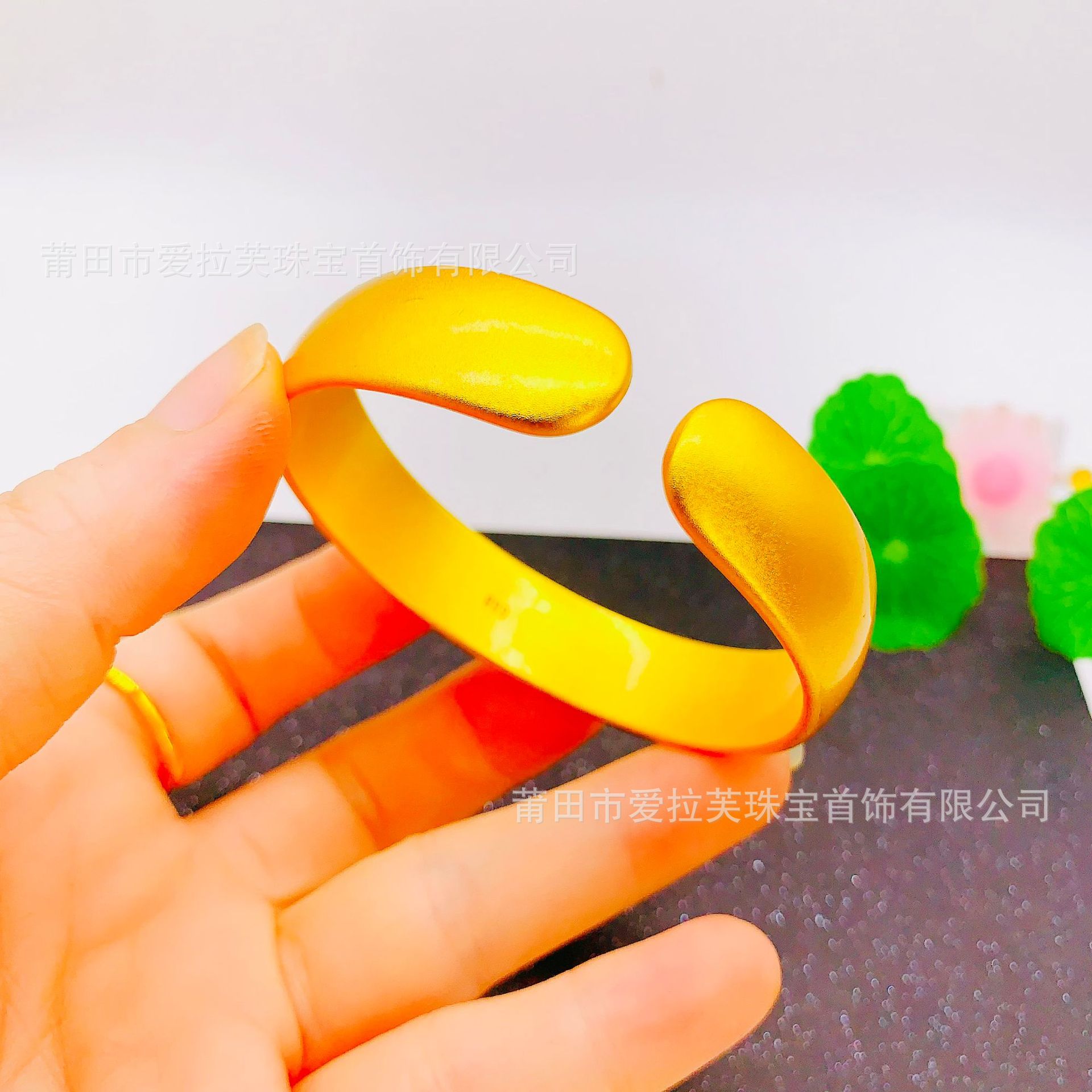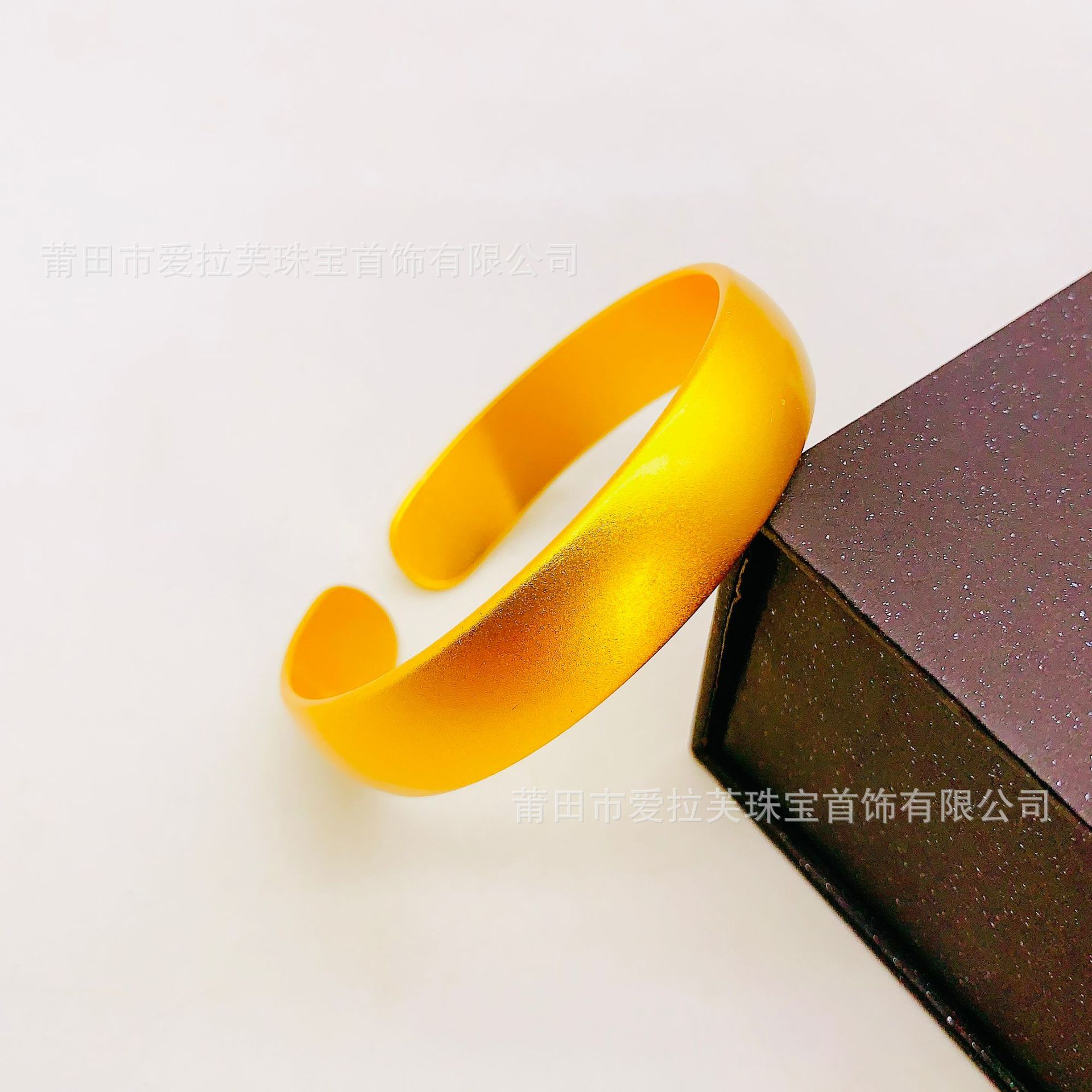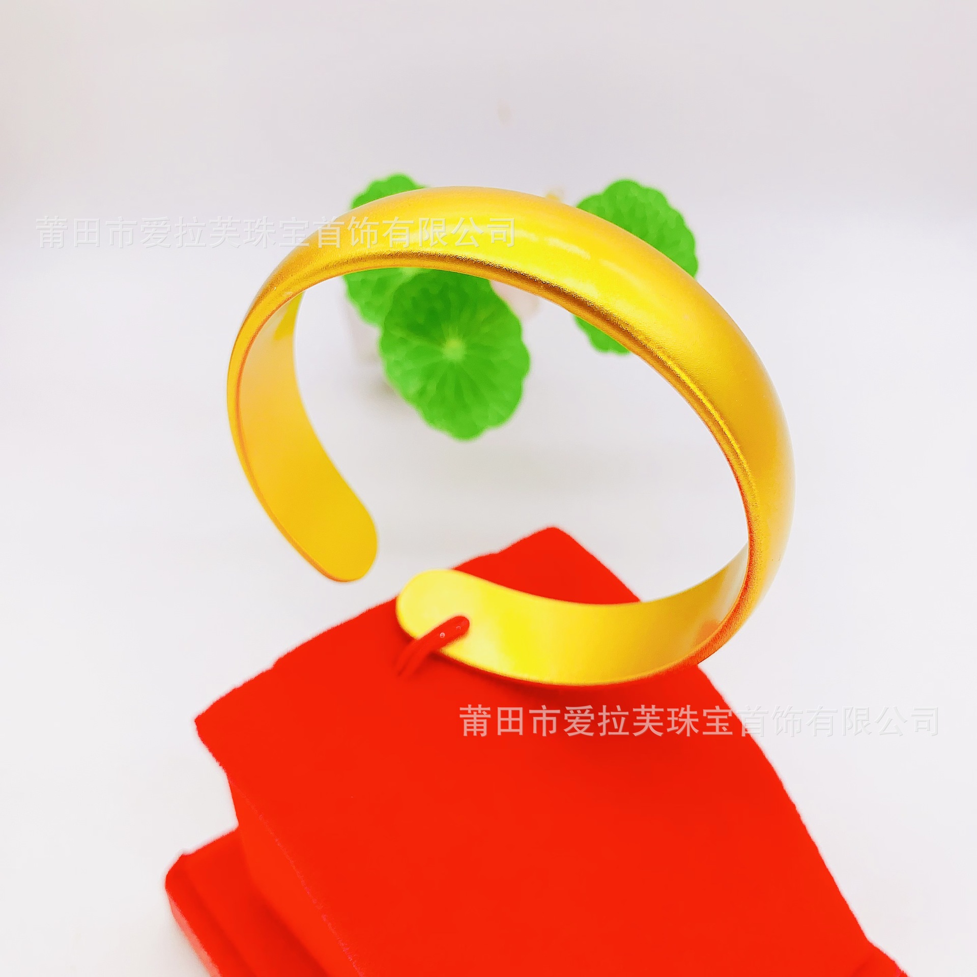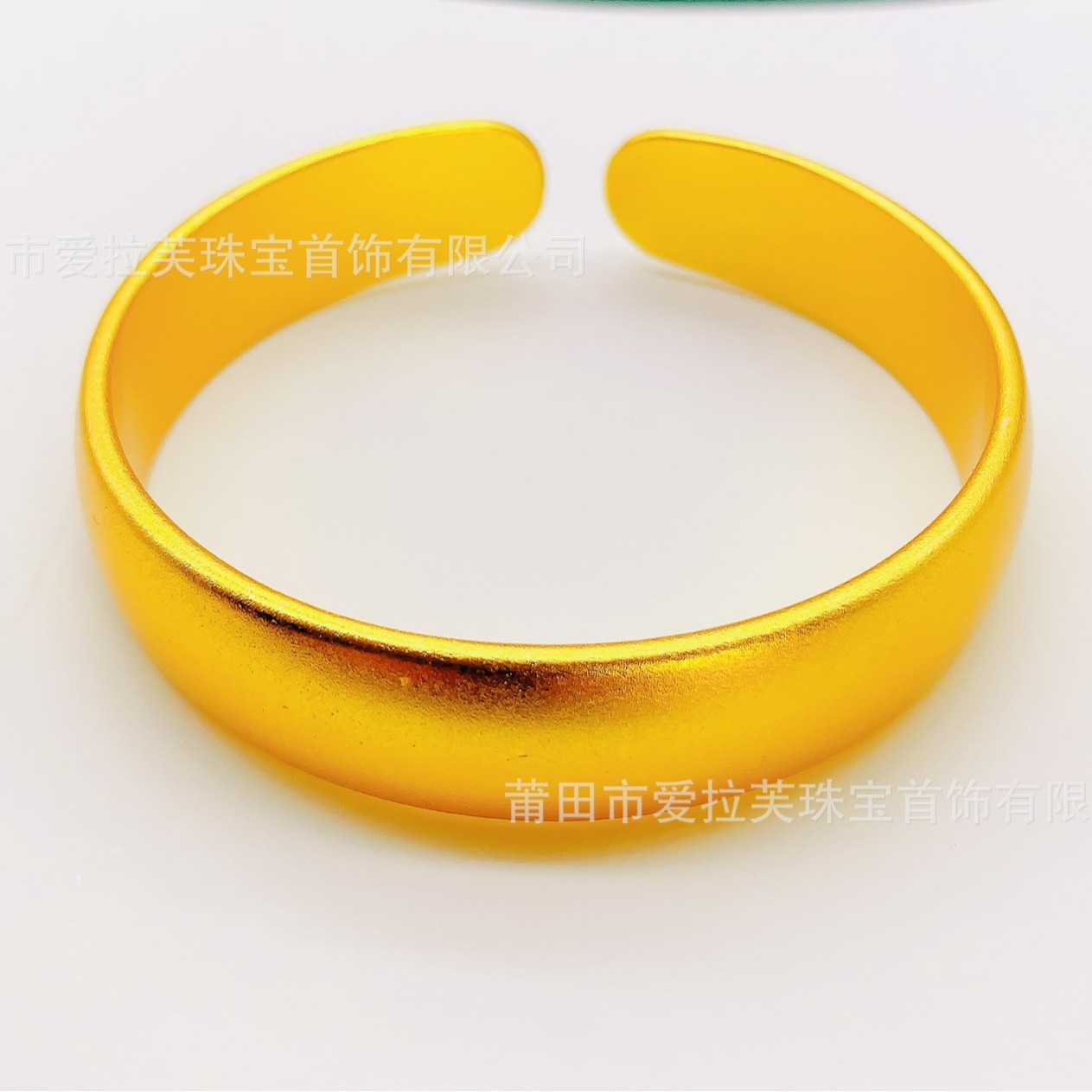 New Chinese Style Copper Gold-Plated 14mm Plain Tire Open Bracelet Women's Frosted Ancient Wide Bracelet Wholesale