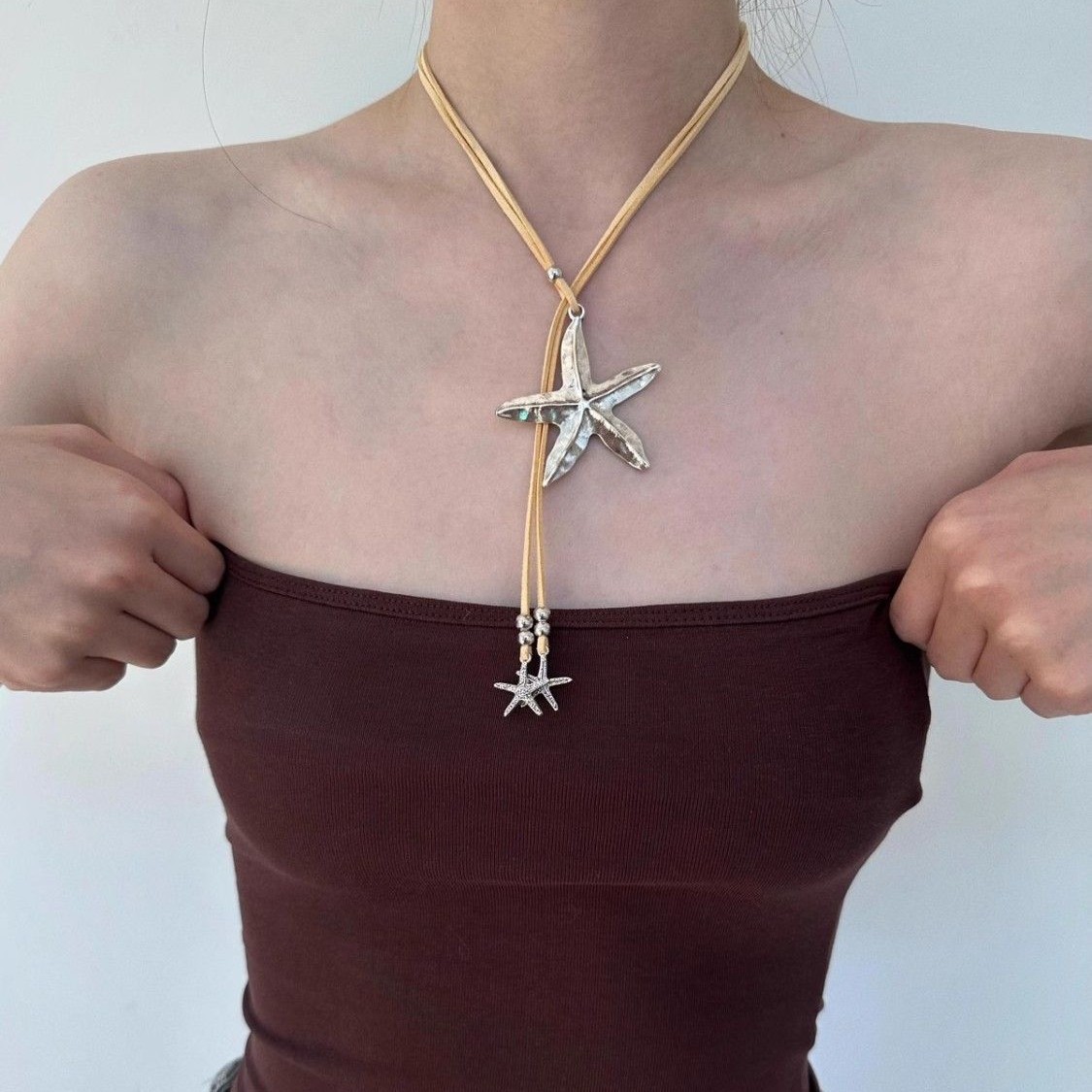 Retro Ins Style Starfish Pendant Bohemian Necklace Various Wear Method Puleather Seaside Holiday Style Necklace