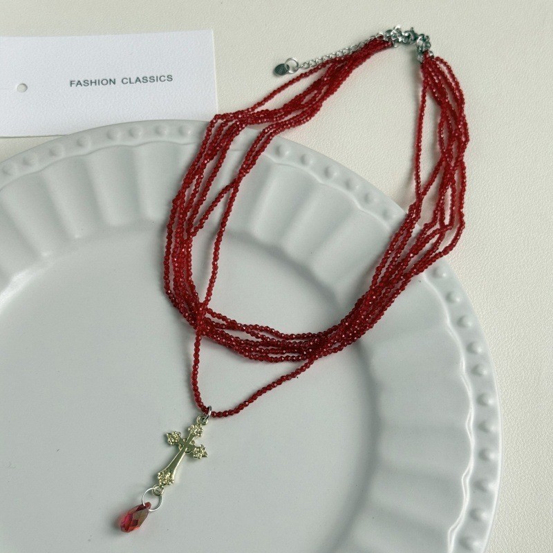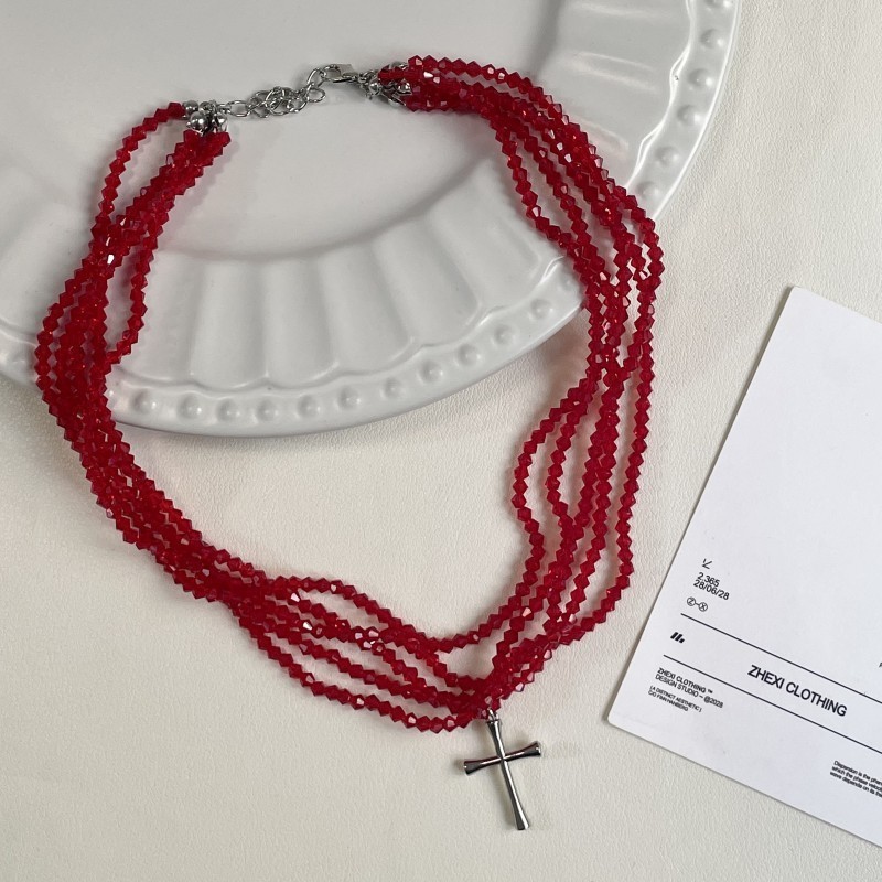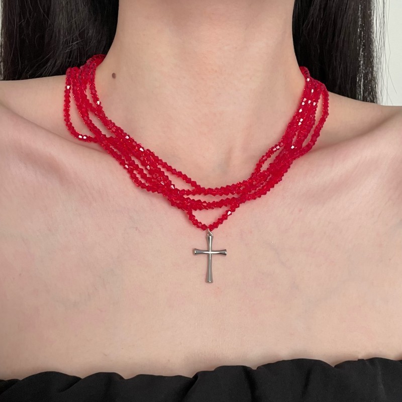 Color: Red beaded cross necklace (w1090)