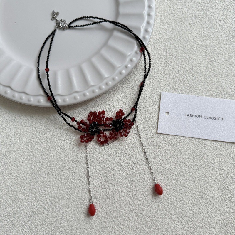 Color: Red flower tassel necklace (1616)
