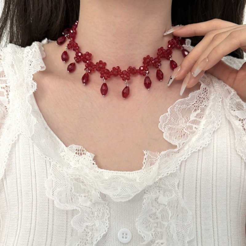 Color: Red crystal flower necklace (w2458)