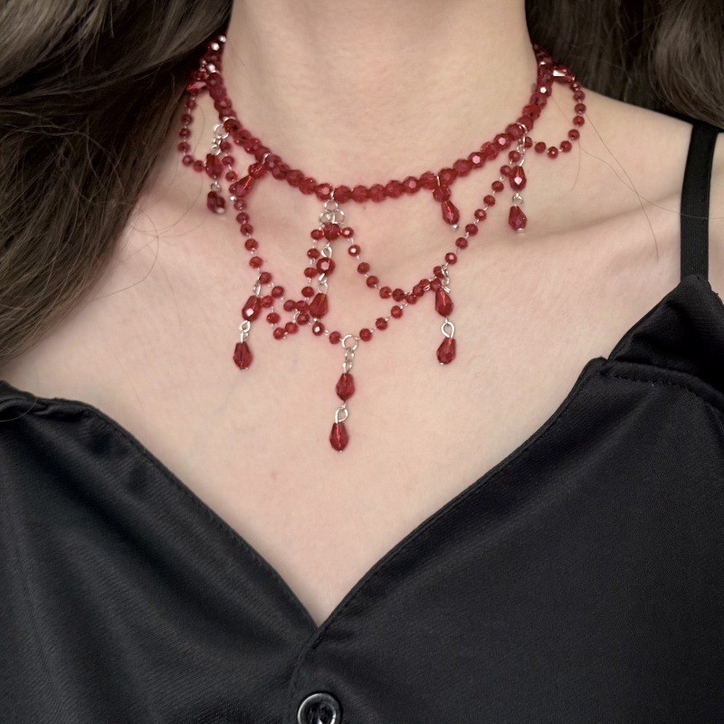 Color: Red water drop beaded necklace (2976)