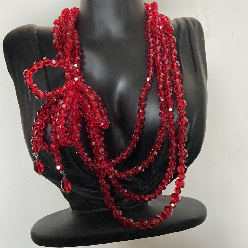 Color: Red crystal beaded necklace (2728)