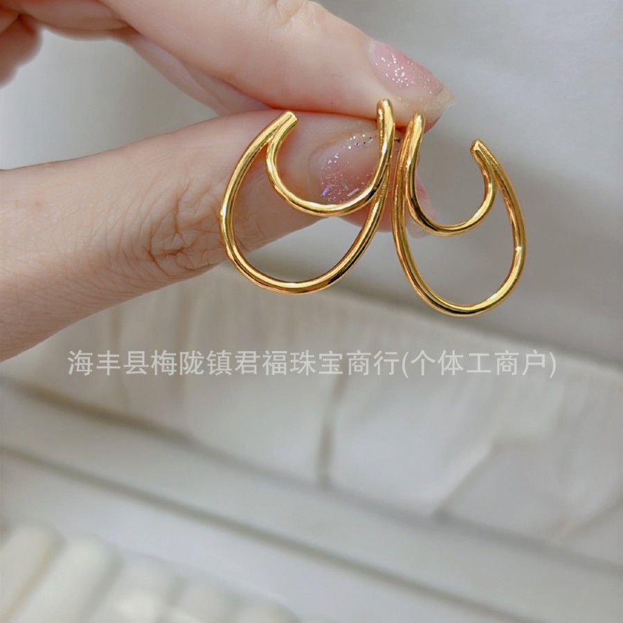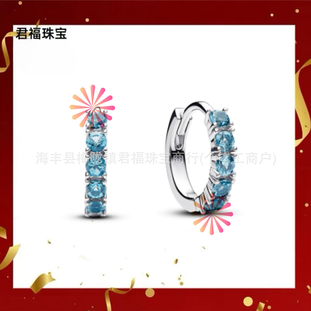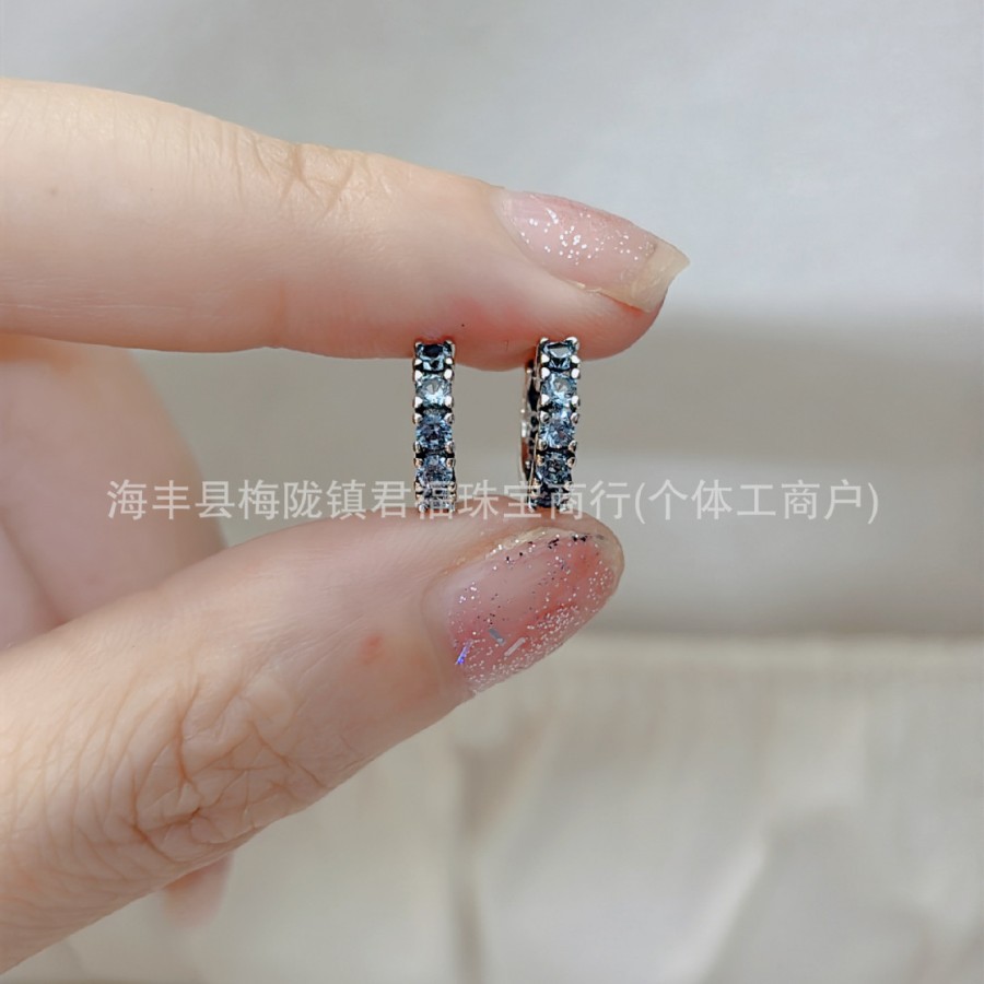 Pan's Cross-Border Best-Selling Retro Gold-Plated Square Small Hoop Earrings Stitch Earrings Ins Blue Simple