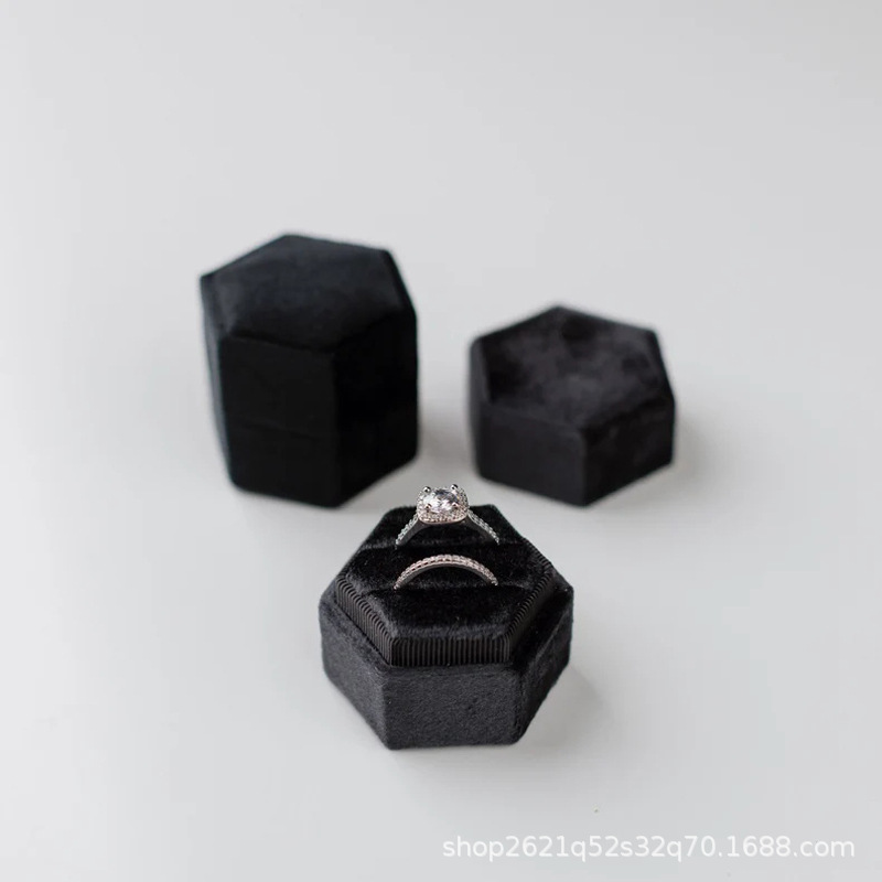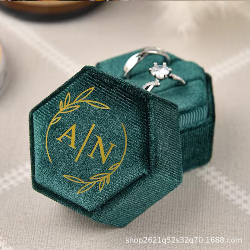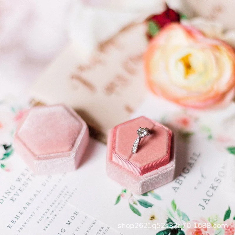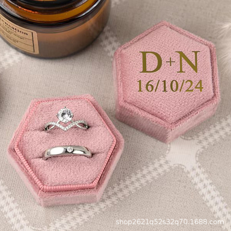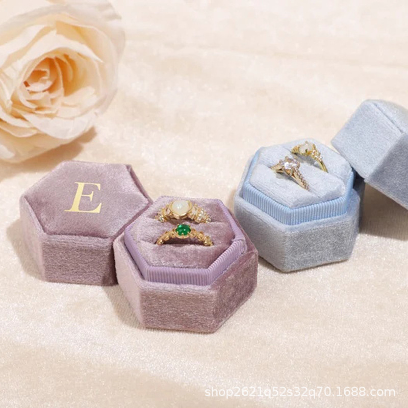 etsy Hot Selling Hot Stamping Hexagonal Velvet Cloth Ring Box Single Slot Double Slot Wedding Proposal Anniversary Gift