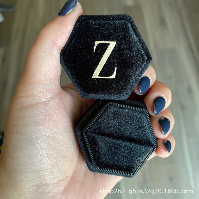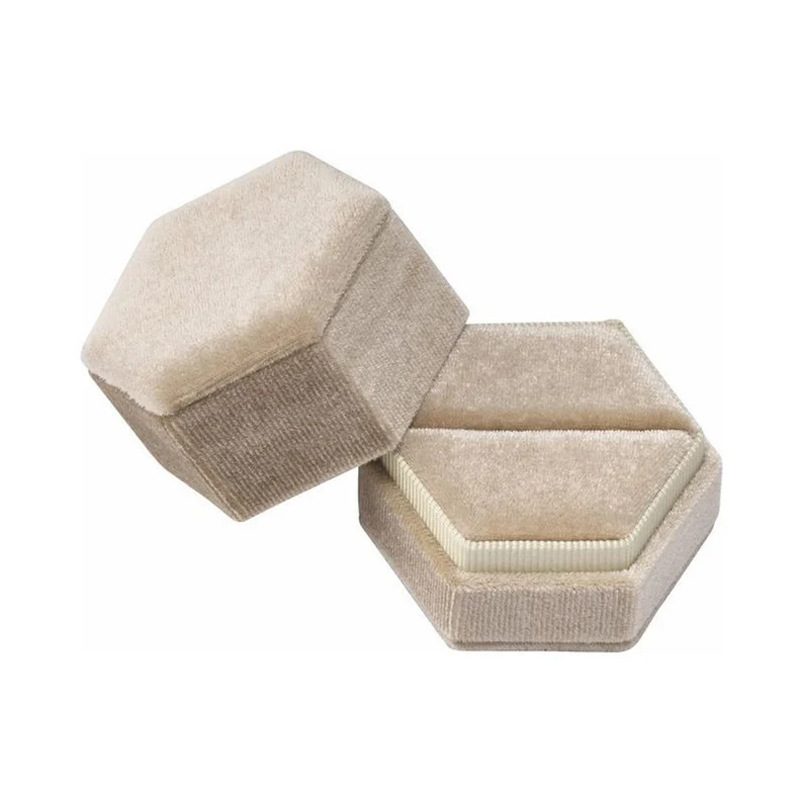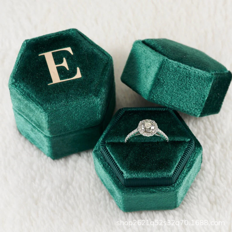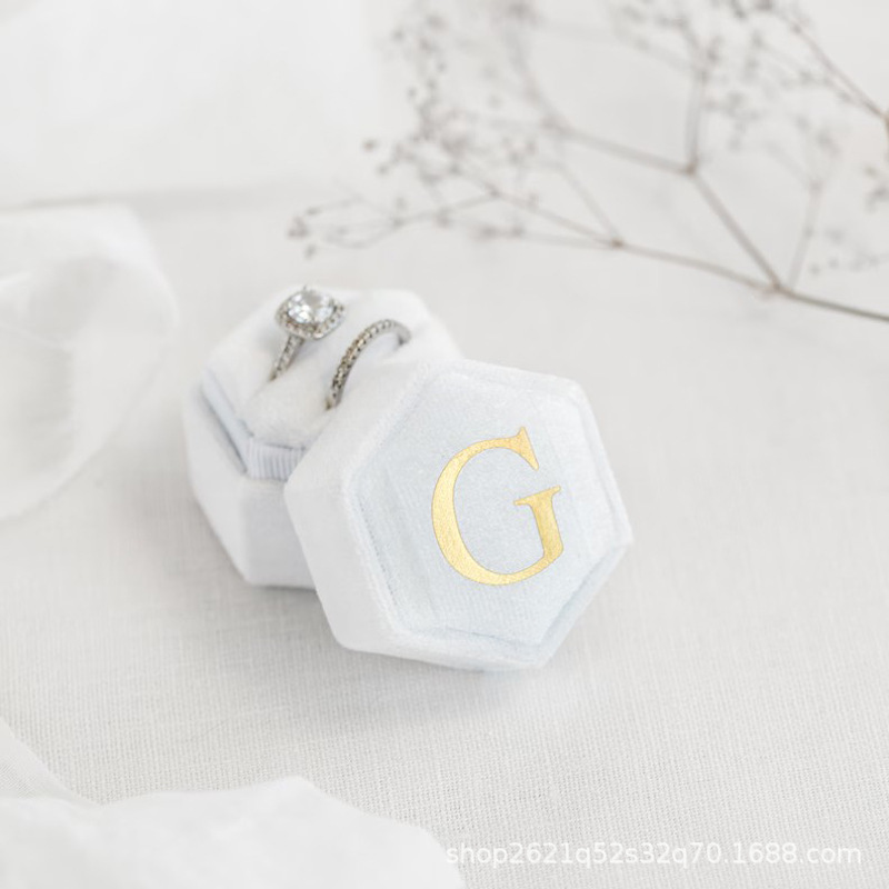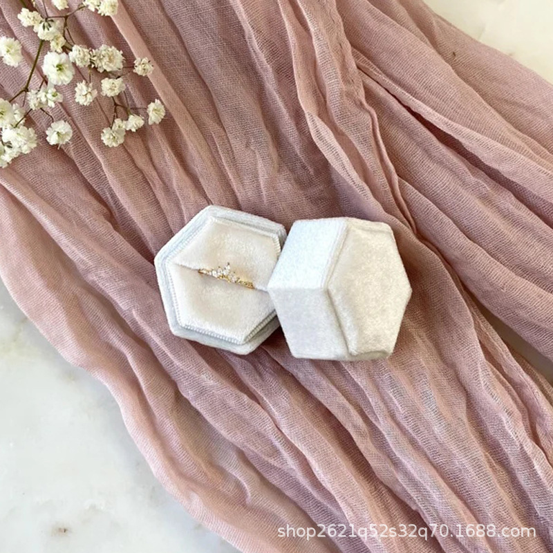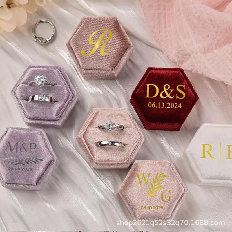 etsy Hot Selling Hot Stamping Hexagonal Velvet Cloth Ring Box Single Slot Double Slot Wedding Proposal Anniversary Gift