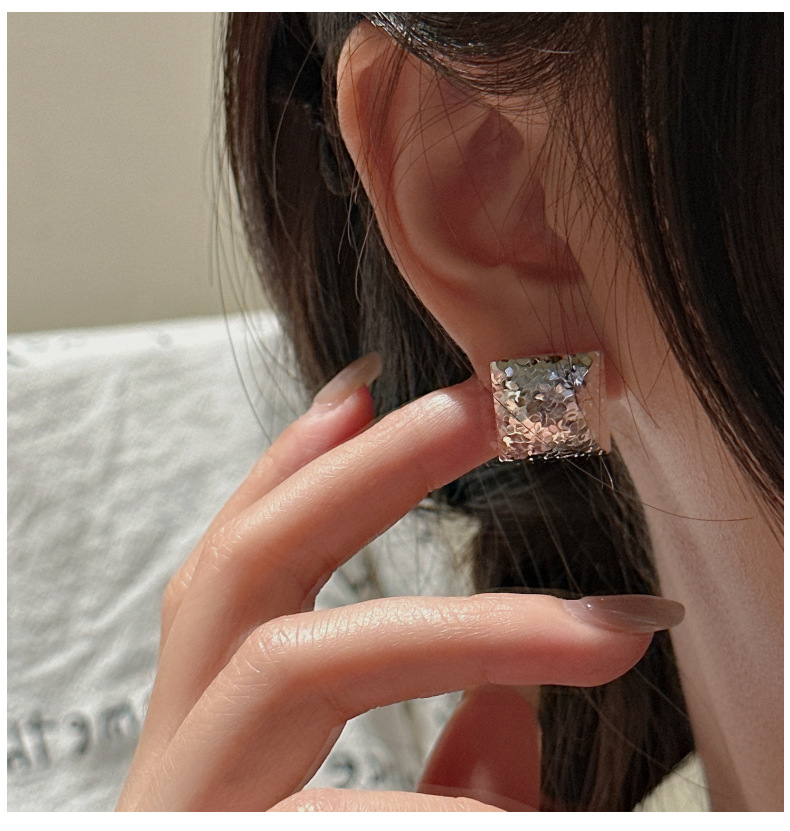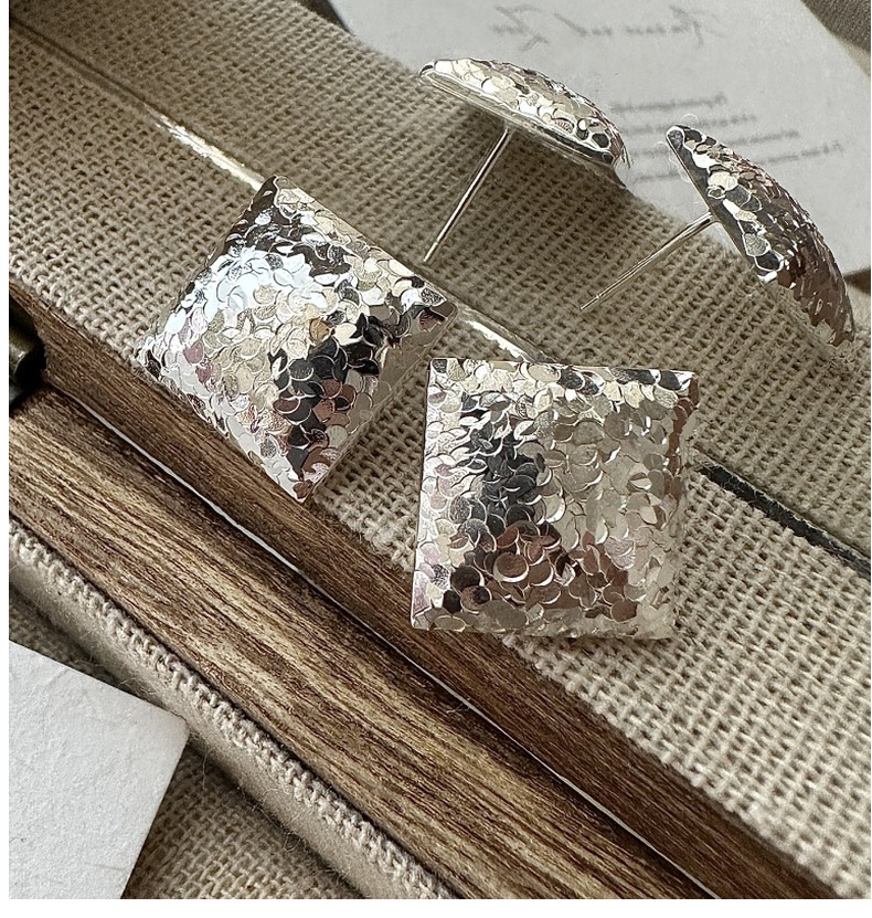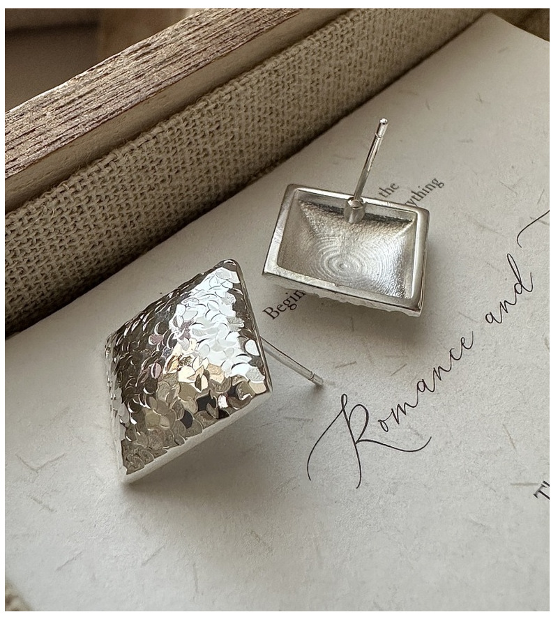 S925 Sterling Silver Korean Style Niche Design Retro Ice Ice Ice Earrings Geometric Square Fashionable Distinctive Ear Jewelry