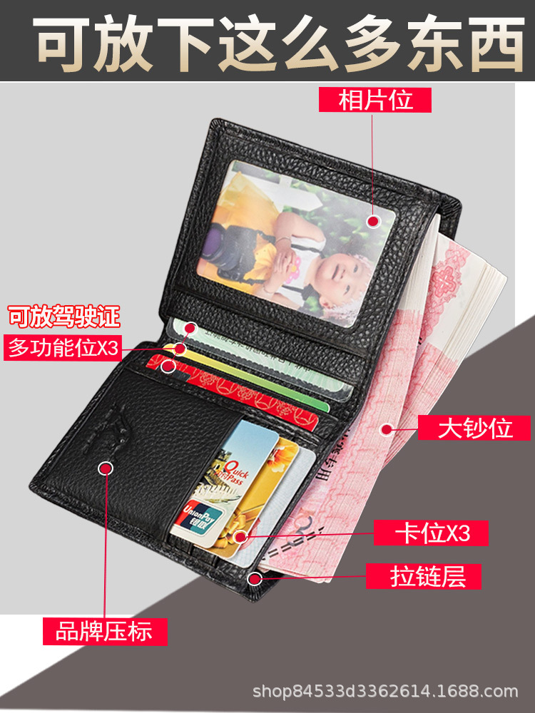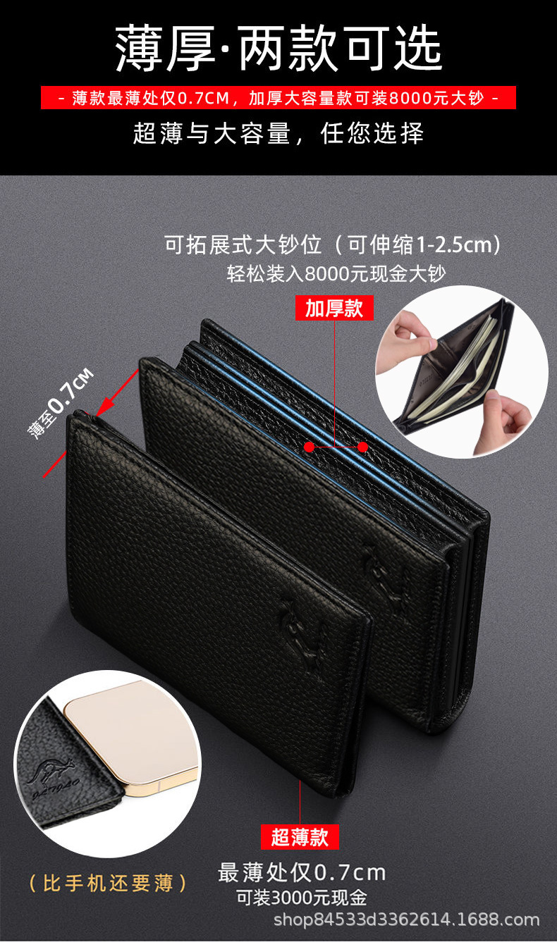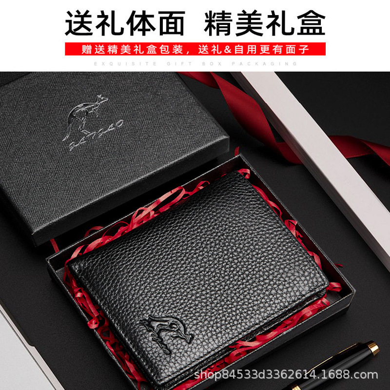 First-Layer Cowhide Men's Wallet Men's Short Genuine Leather Wallet Men's Youth Business Men's Wallet Kangaroo Leather Wallet