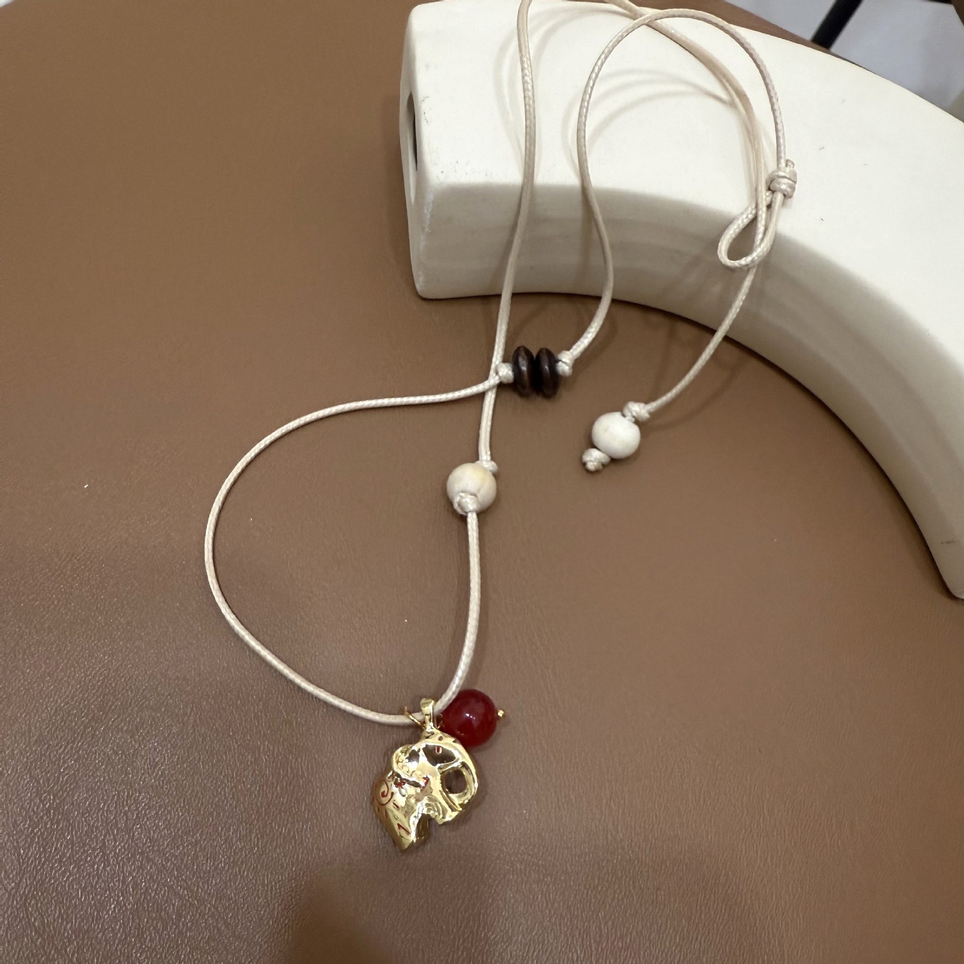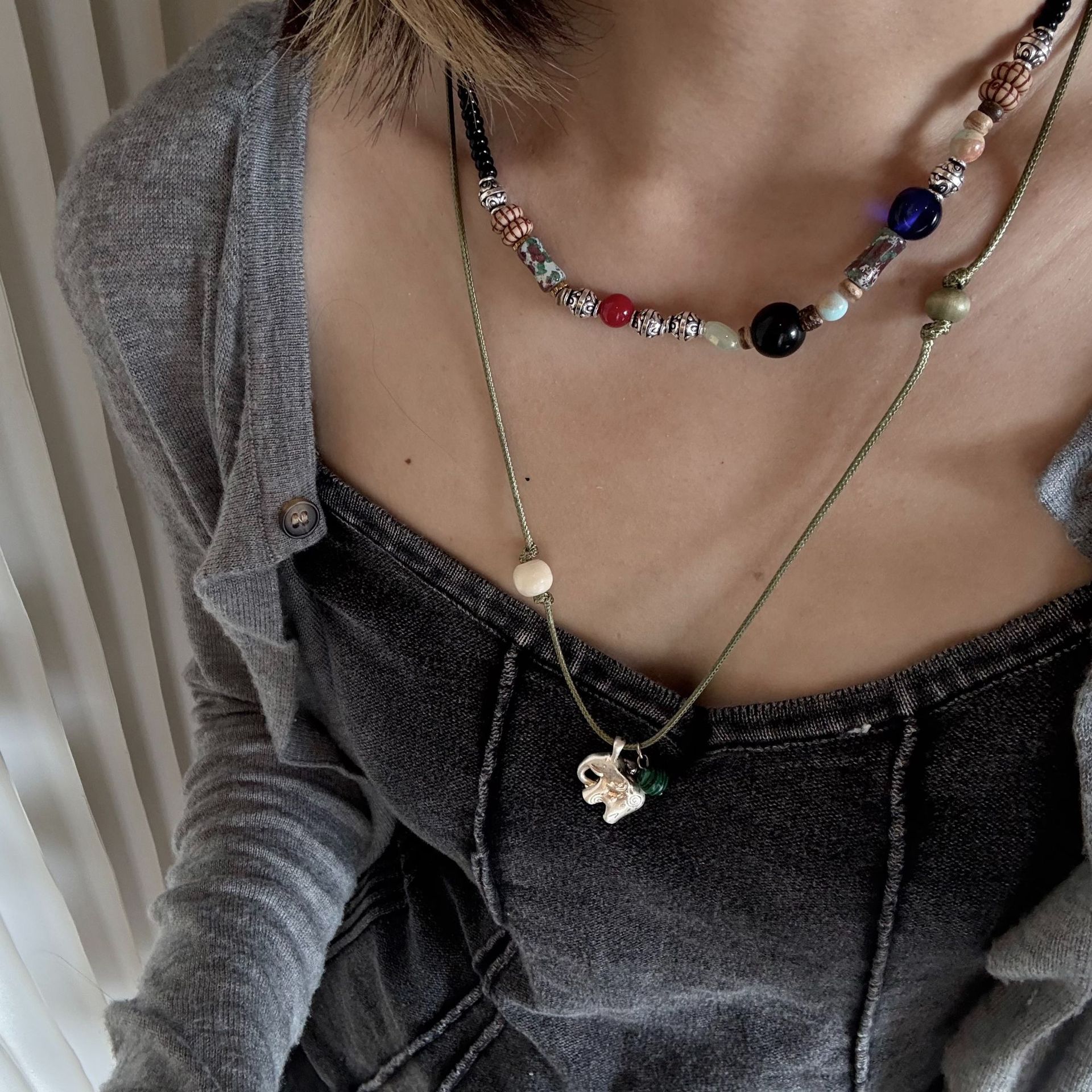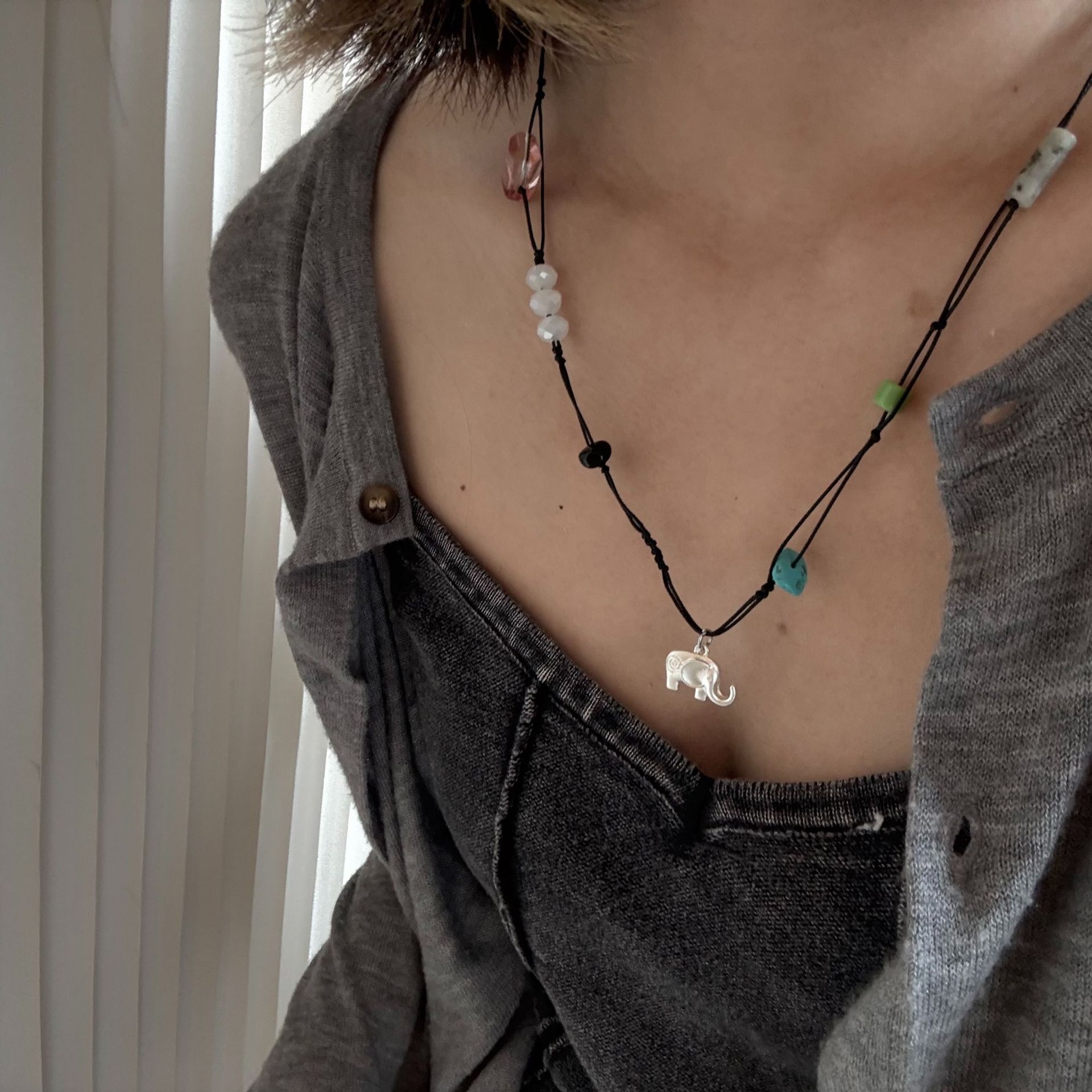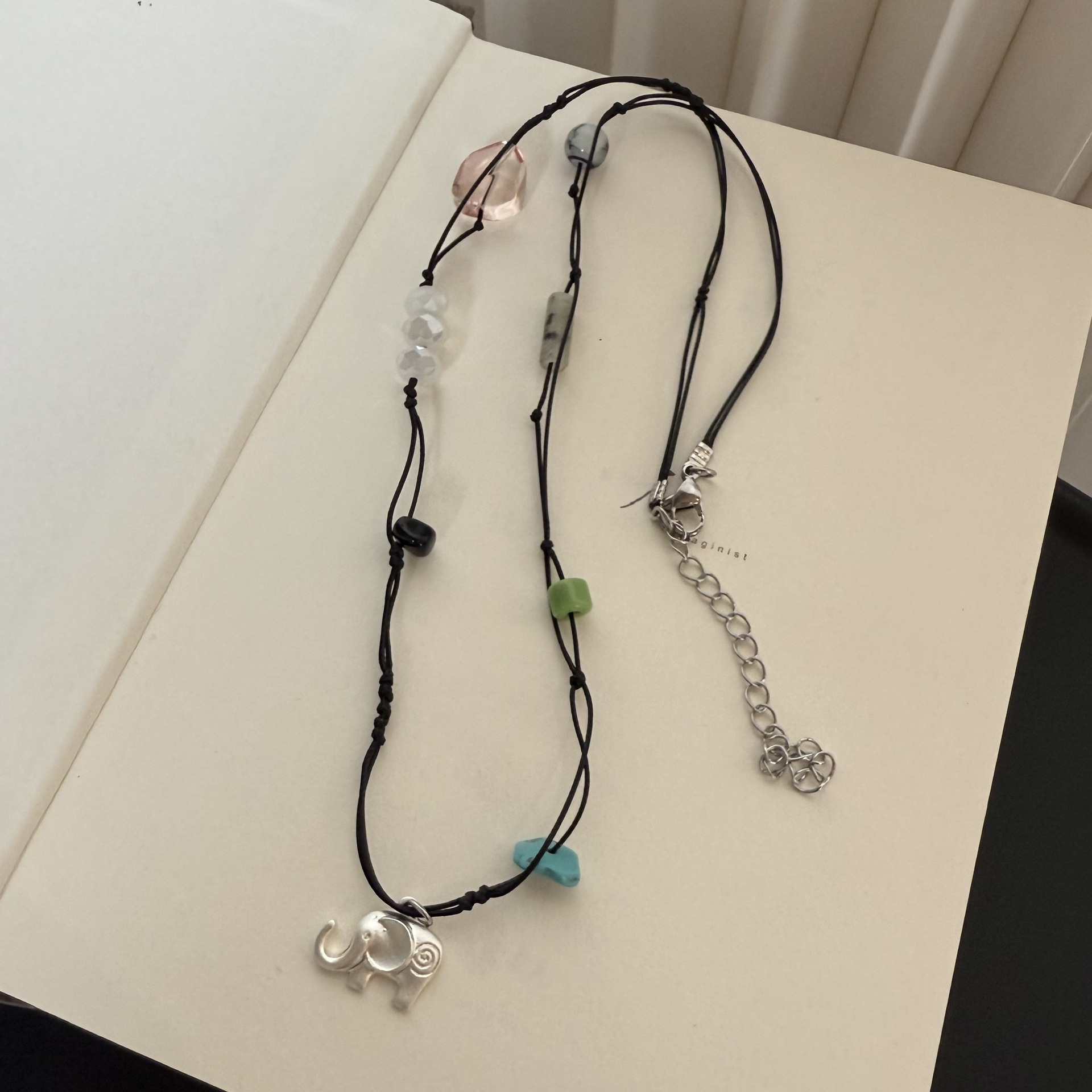 Elephant Pendant Necklace Women's Handmade Woven Colorful Natural Stone Necklace Entry Luxury Small New Chinese Style Beaded Woolen Chain