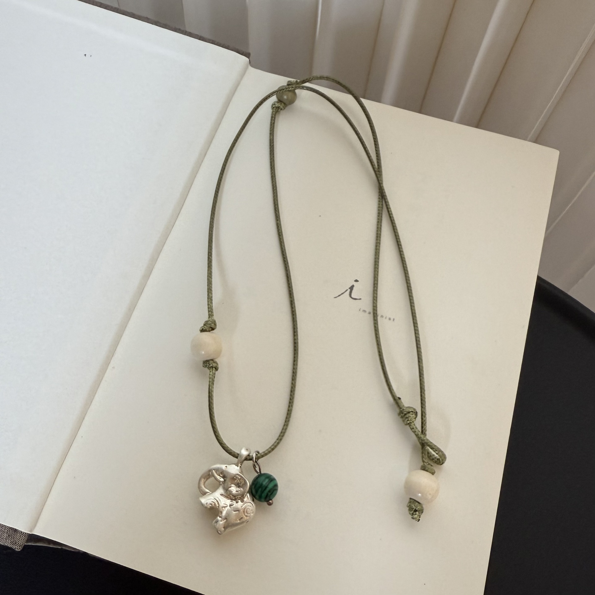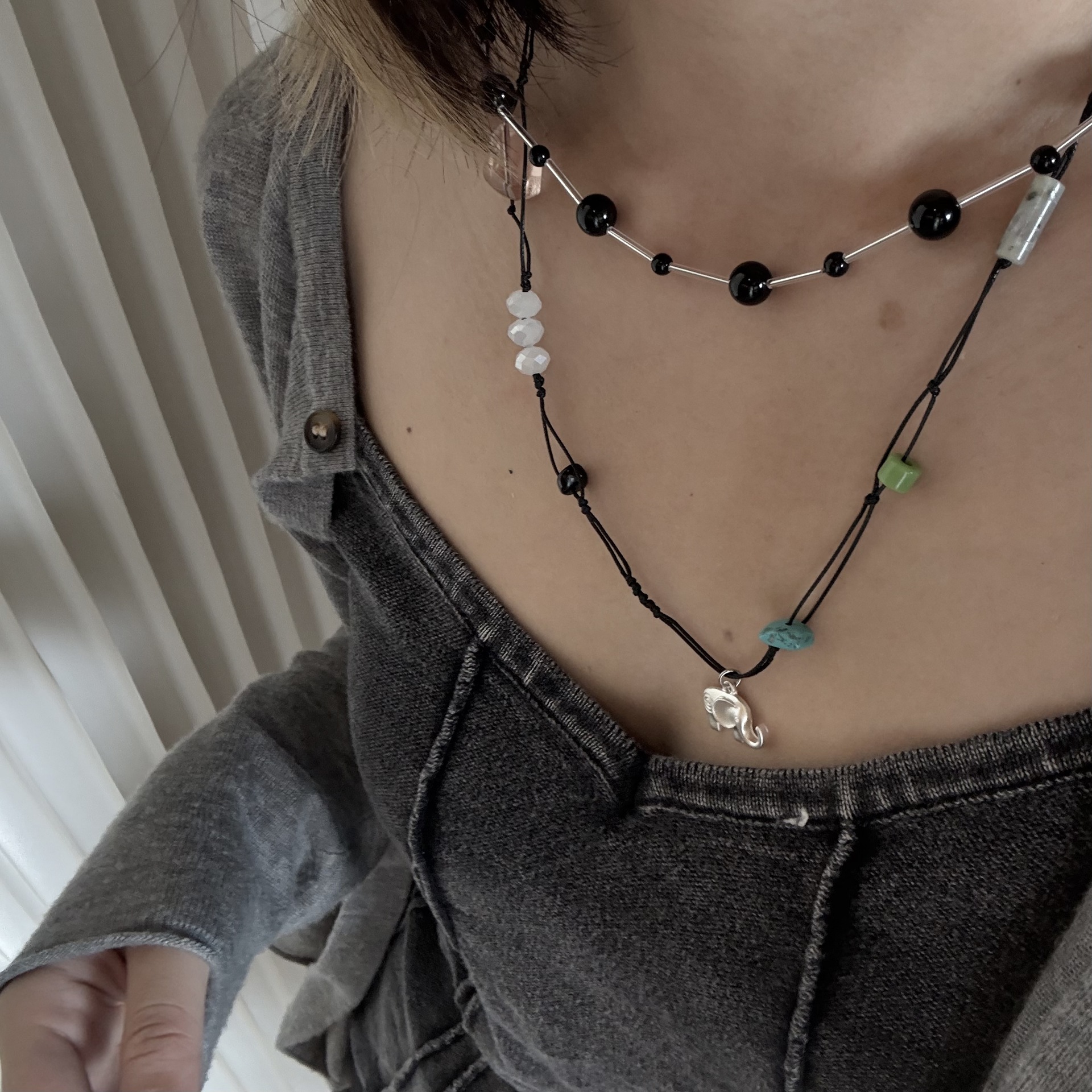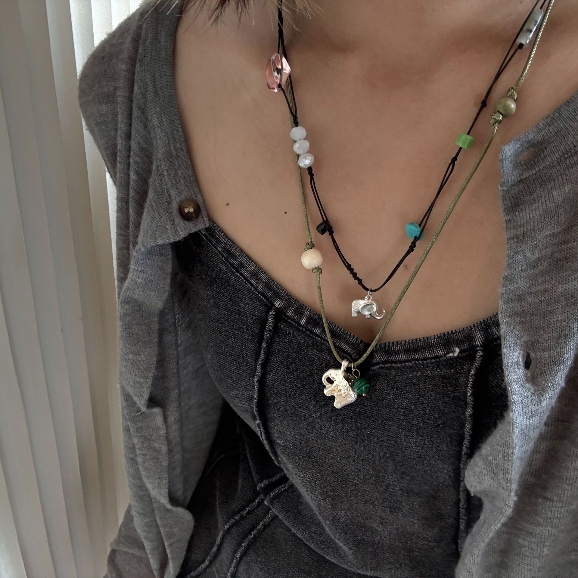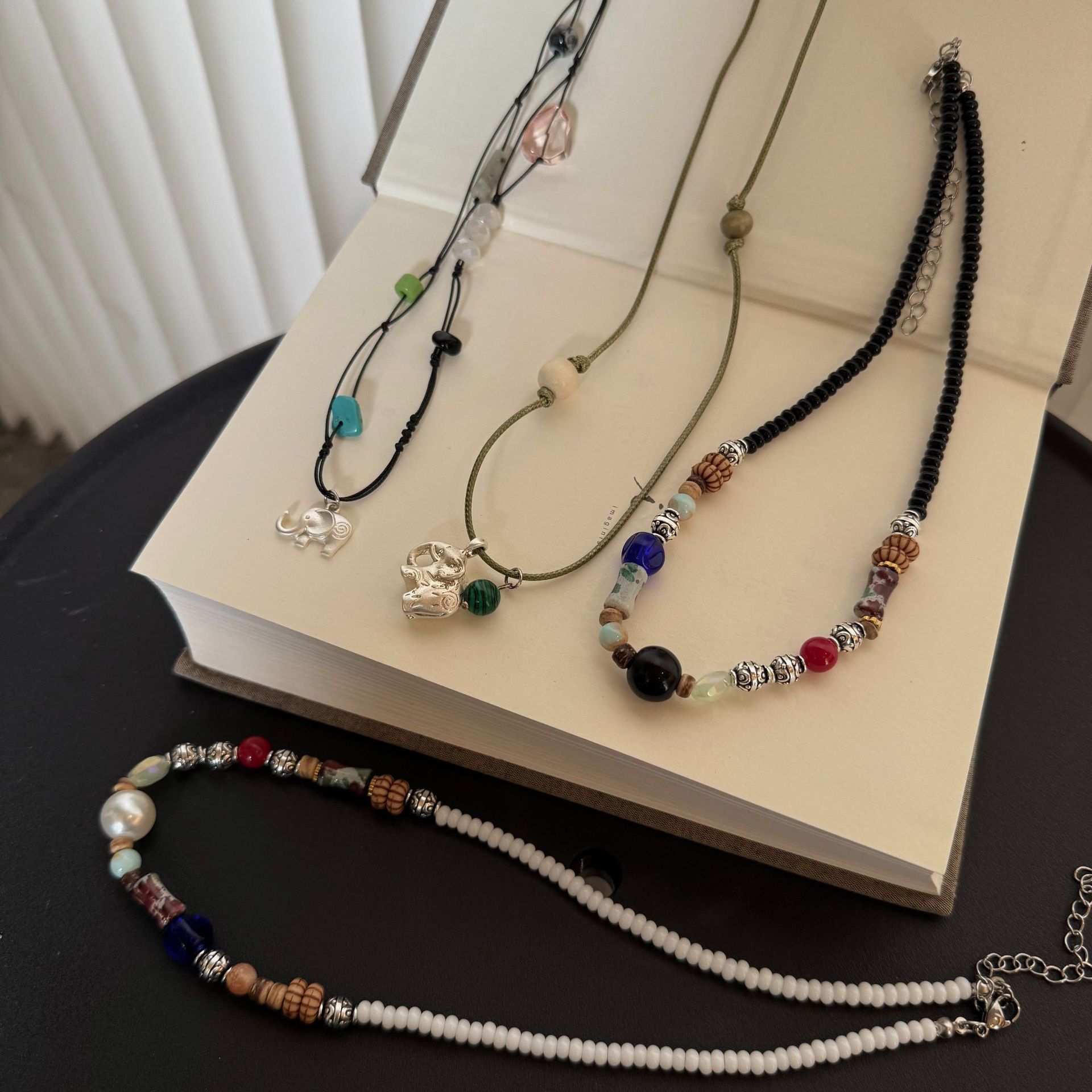 Elephant Pendant Necklace Women's Handmade Woven Colorful Natural Stone Necklace Entry Luxury Small New Chinese Style Beaded Woolen Chain
