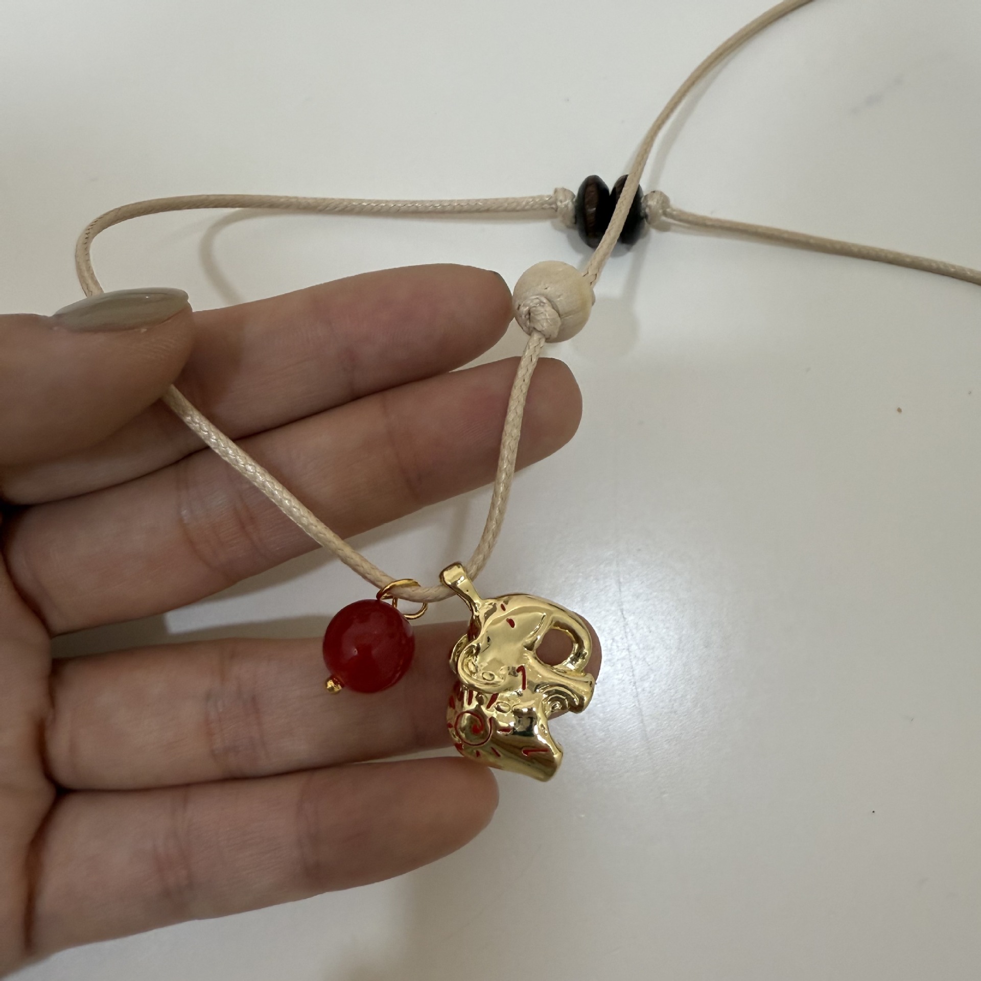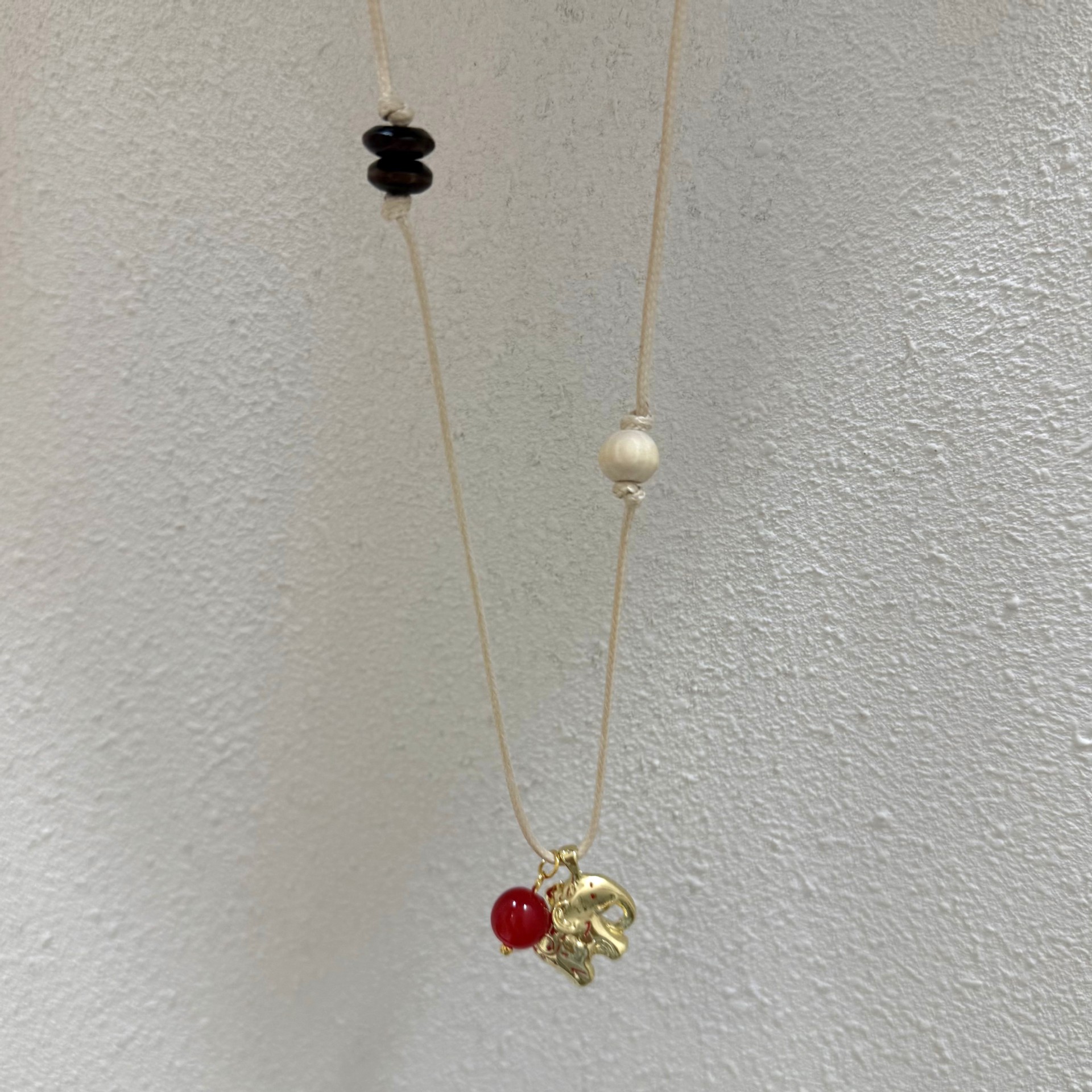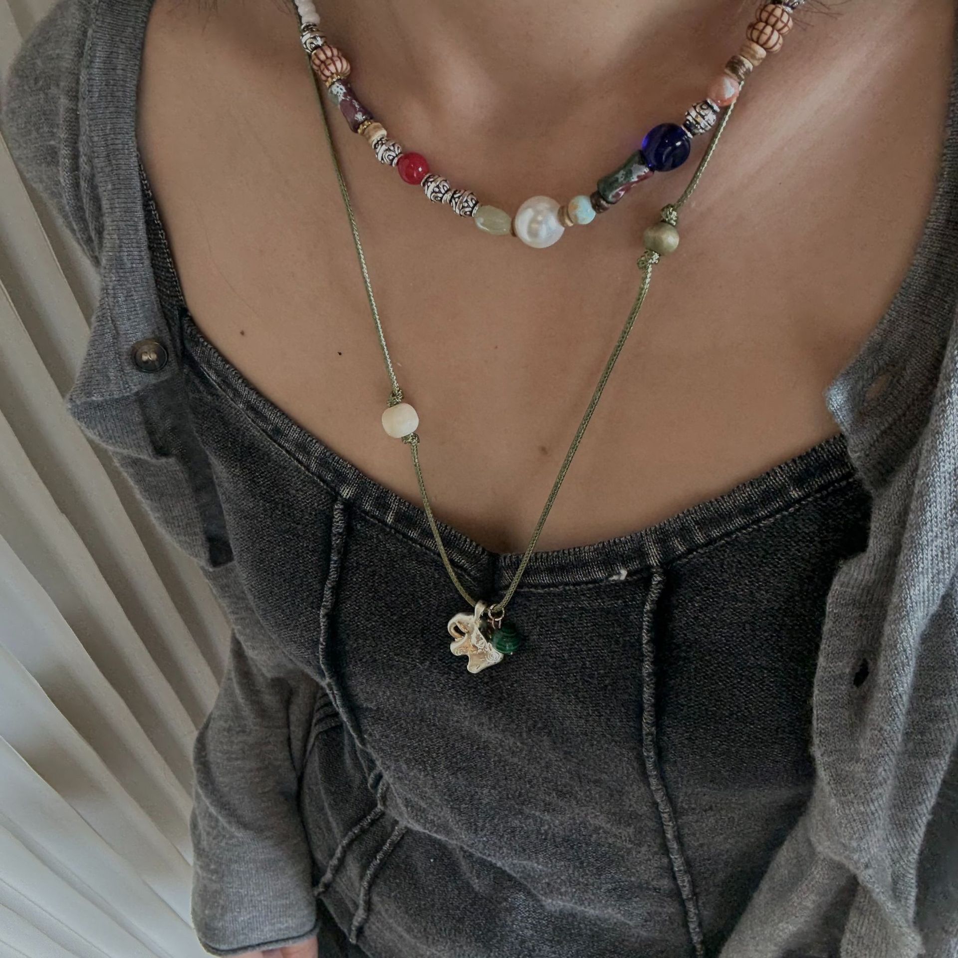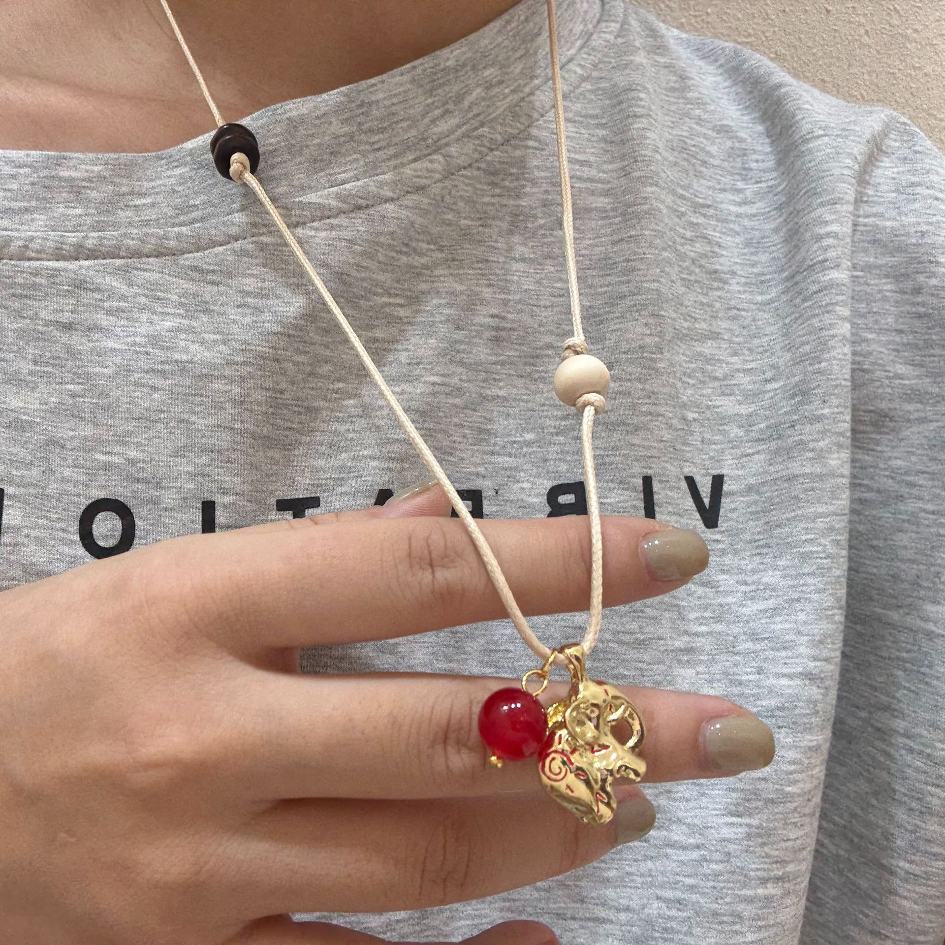 Elephant Pendant Necklace Women's Handmade Woven Colorful Natural Stone Necklace Entry Luxury Small New Chinese Style Beaded Woolen Chain