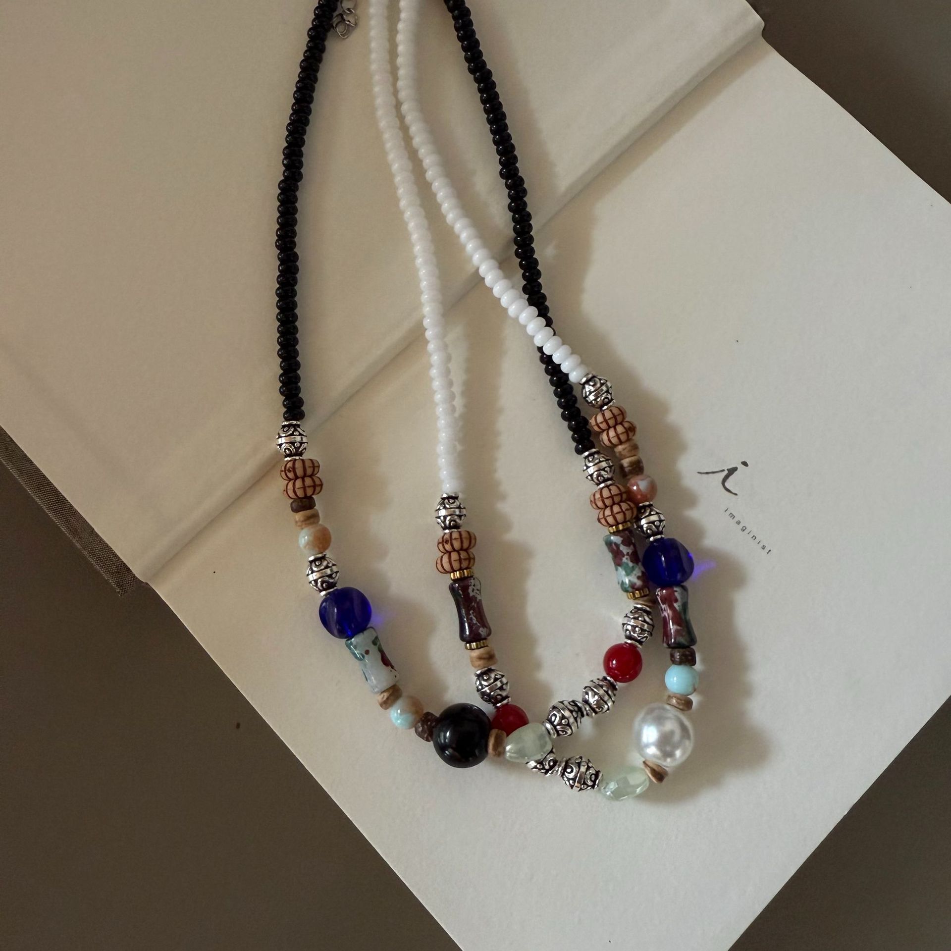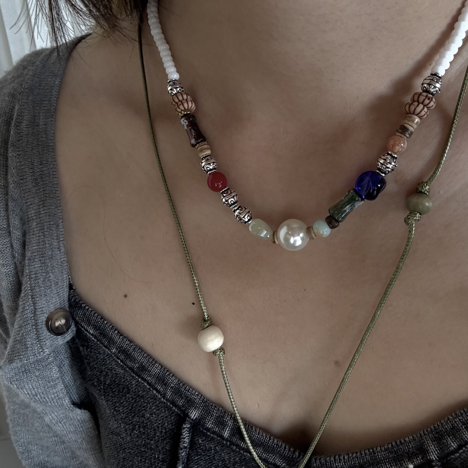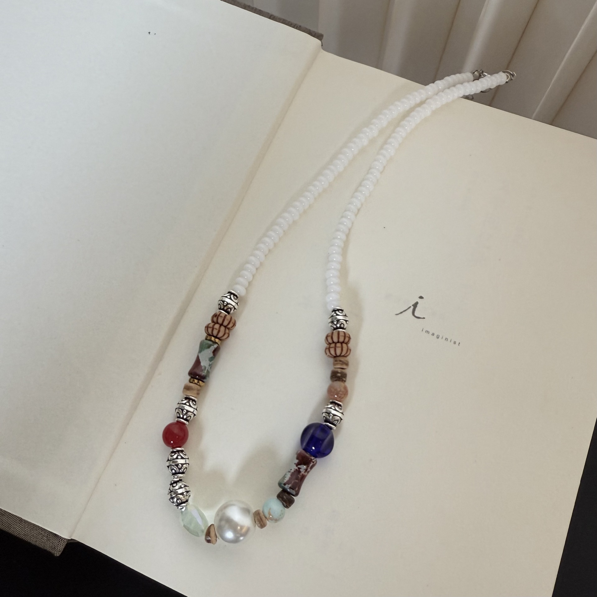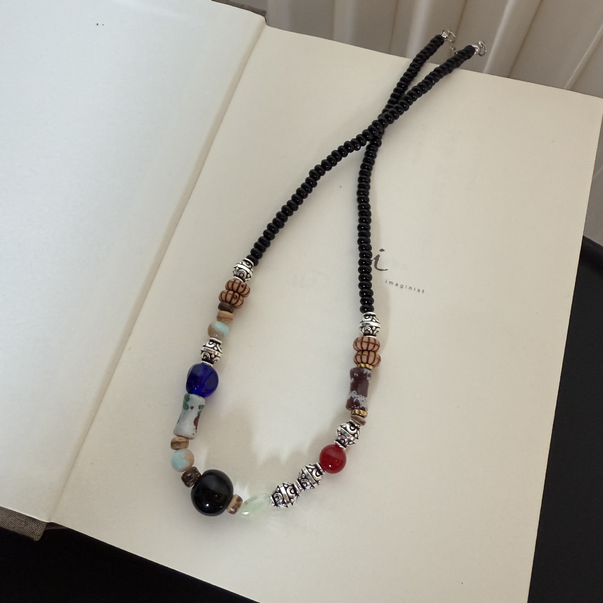 Elephant Pendant Necklace Women's Handmade Woven Colorful Natural Stone Necklace Entry Luxury Small New Chinese Style Beaded Woolen Chain