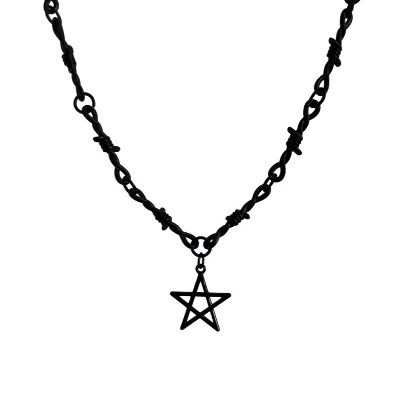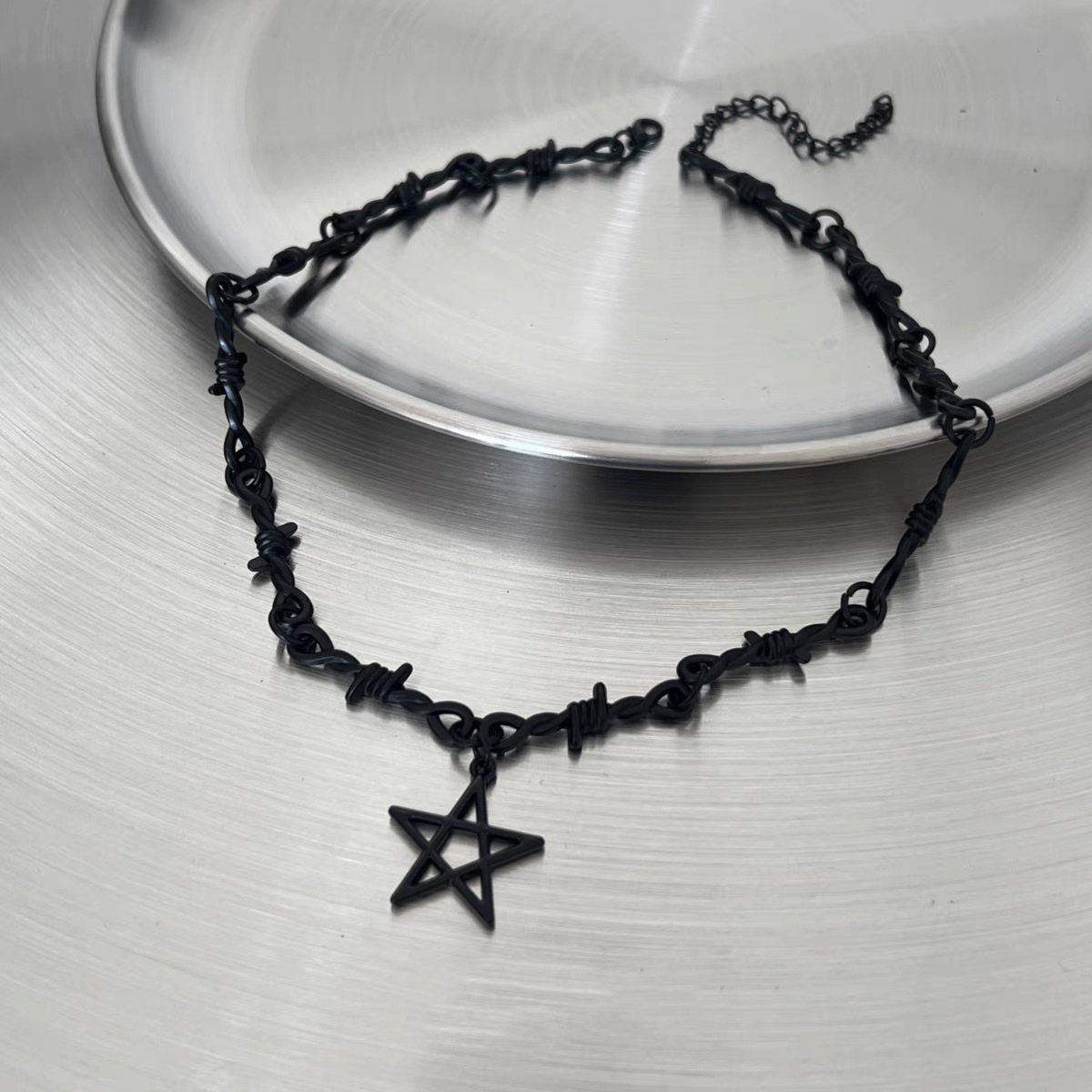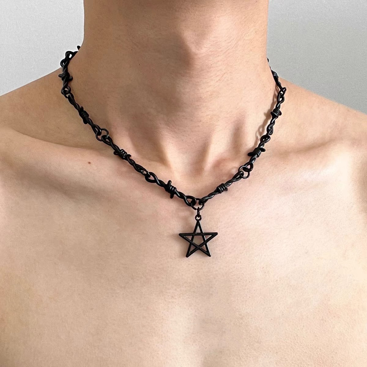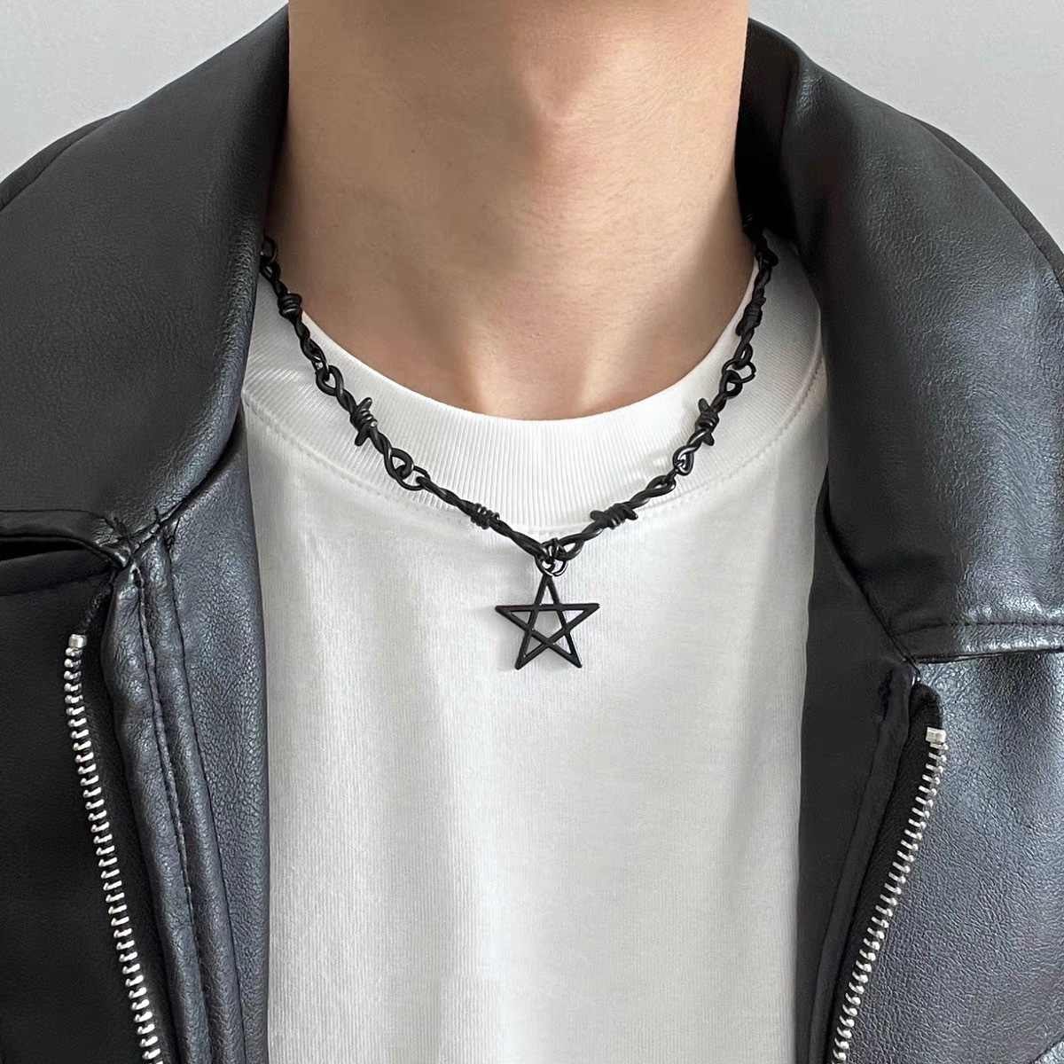 Black Thorns Pentagram Punk Necklace Men's and Women's Trendy Niche Neck Chain Spice Girls Y2K Clavicle Chain Sweatshirt Accessories