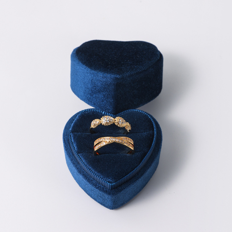 Specifications and models: Is54; heart-shaped double row ring box 5*4.3*5.5cm