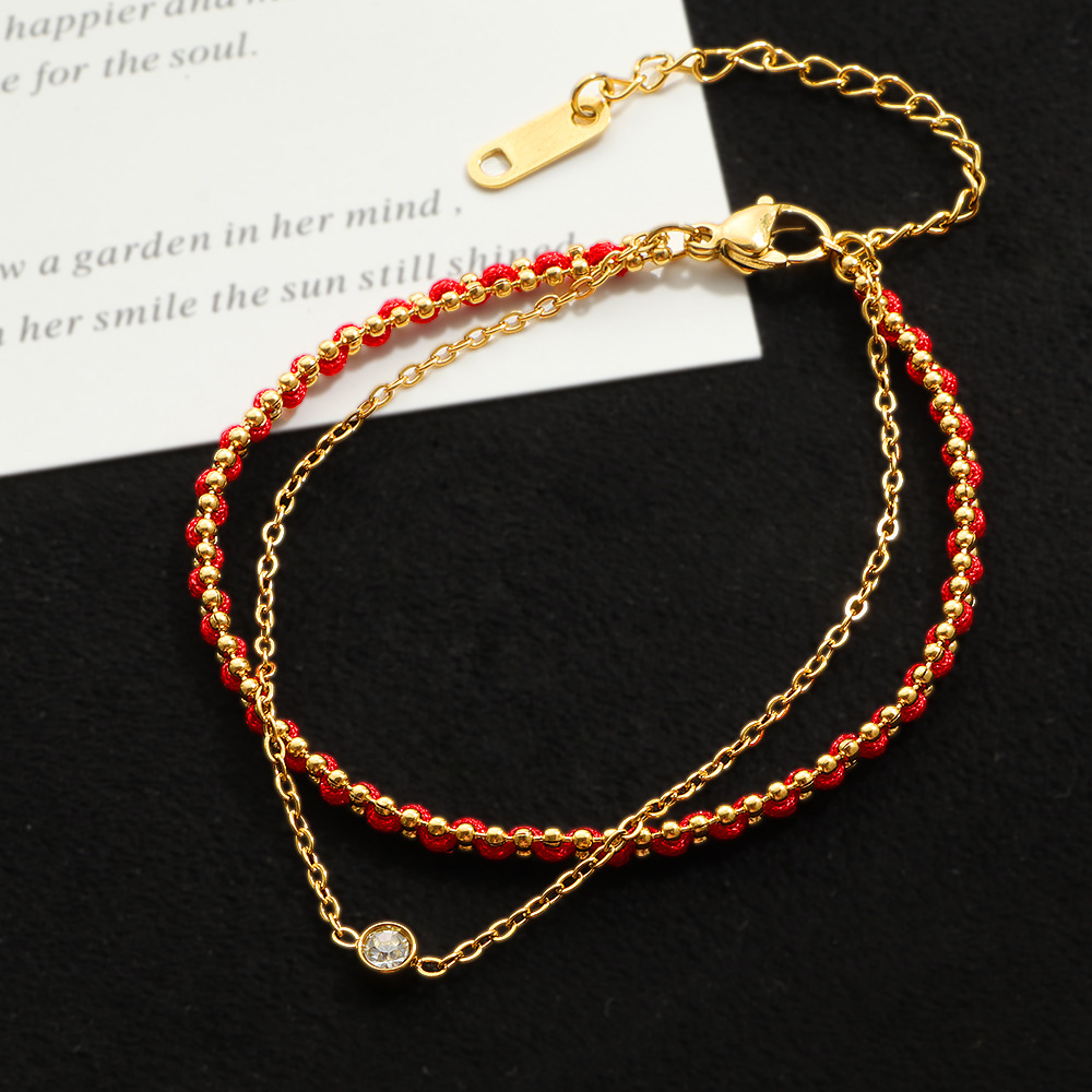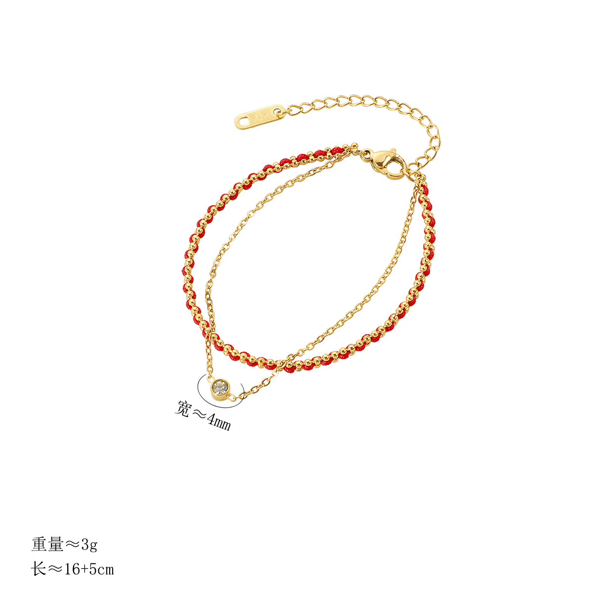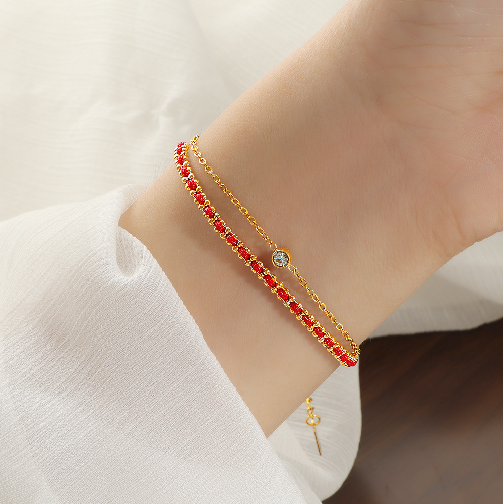 Benmingnian Double-layer Single Diamond Red Rope Bracelet for Women Titanium Steel Niche Chinese Style Stacked Woven Hand Rope Fashionable Red Rope for Women