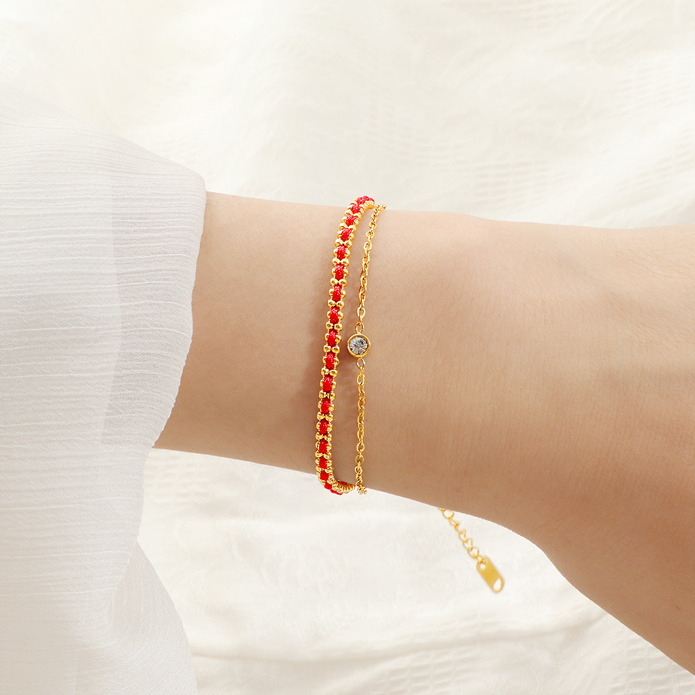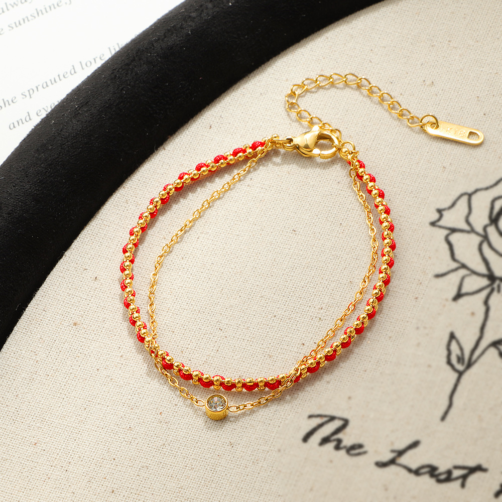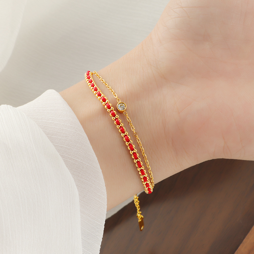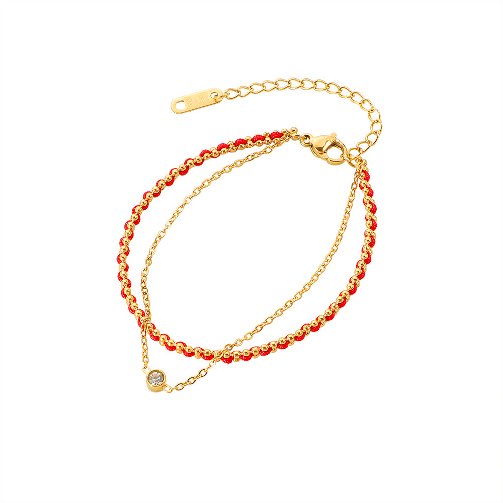 Benmingnian Double-layer Single Diamond Red Rope Bracelet for Women Titanium Steel Niche Chinese Style Stacked Woven Hand Rope Fashionable Red Rope for Women