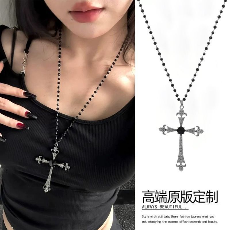 Color: Dark beaded cross necklace - about 36cm