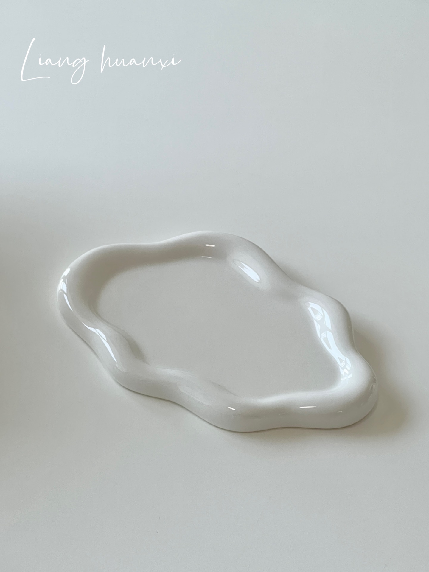 Single-Layer Light Luxury Cloud Ceramic Jewelry Storage Tray High-End Perfume Display Entrance Key Storage Ornaments