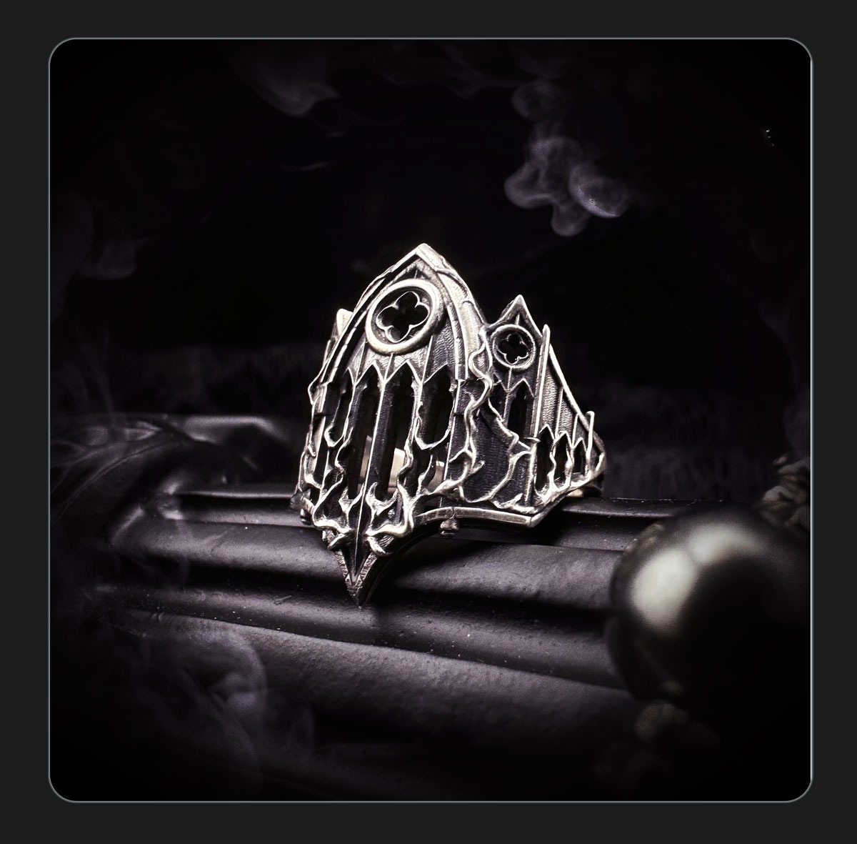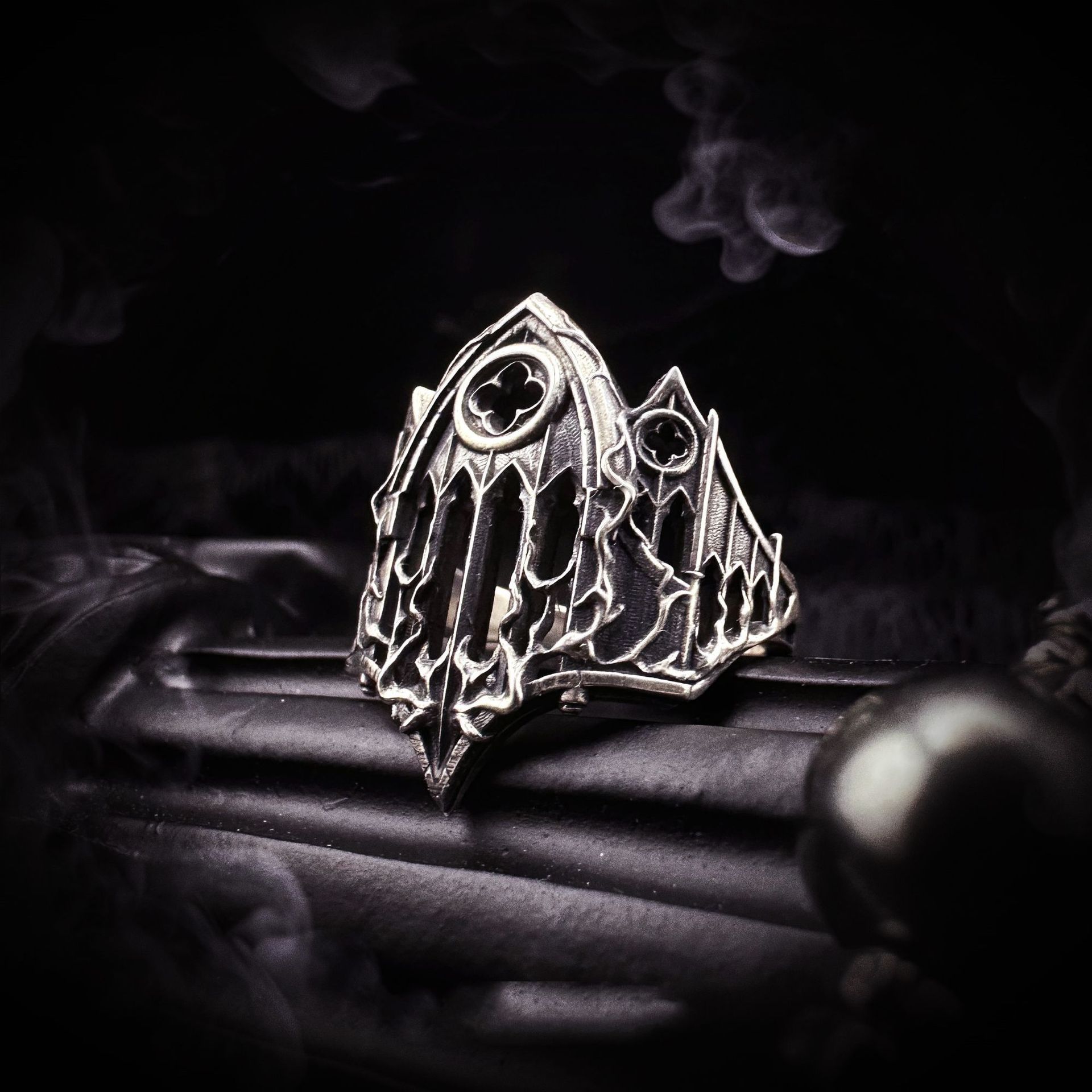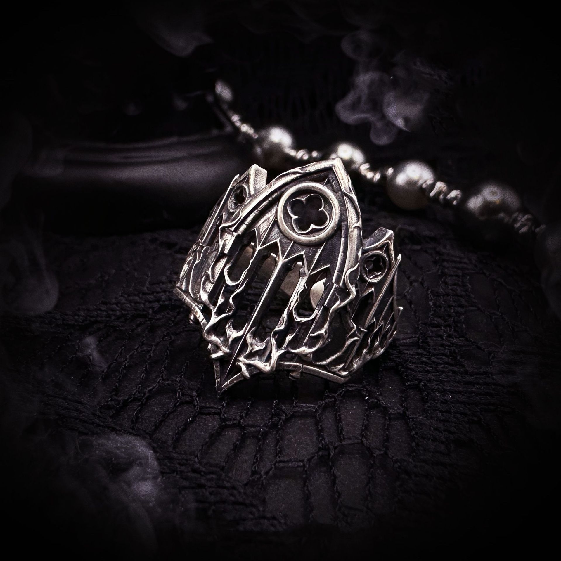 Wish Cross-Border New Retro Cross Fire Cathedral Gothic Relief Stained Glass Dark Open Ring Trendy Men