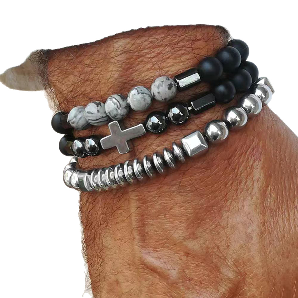European and American Titanium Steel Men's Leather Bracelets Punk Heavy Metal Cross Braided Bracelets Cross-Border Hot Selling Hand Jewelry Wholesale
