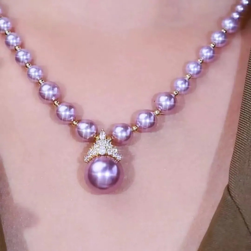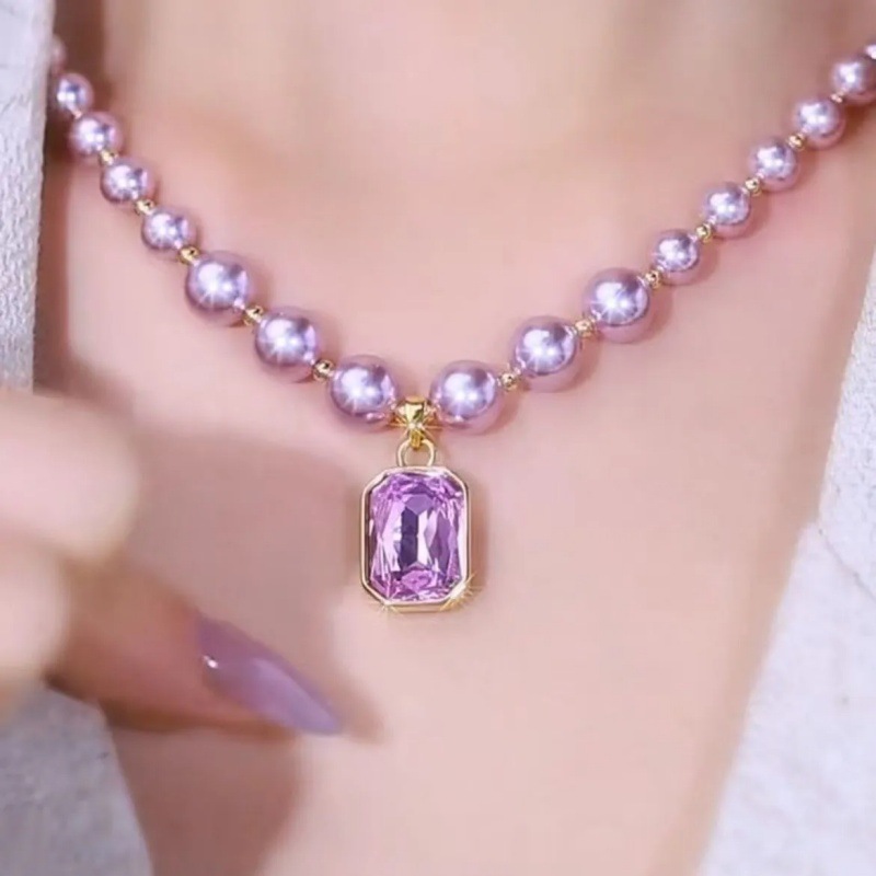 New Purple Pearl Square Crystal Square Necklace Simple Purple Fairy Clavicle Chain Elegant Versatile Necklace
