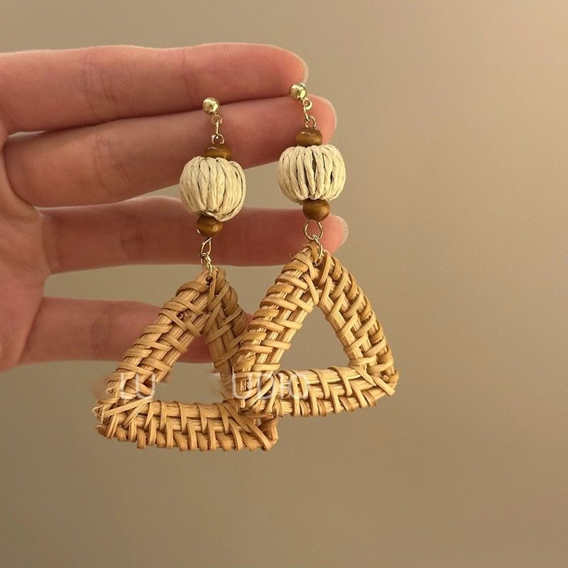 Color: Woven rattan triangle pendant earrings