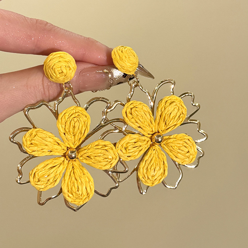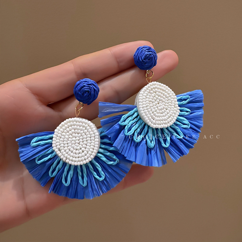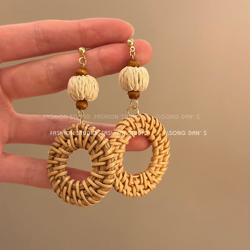 Color: Woven grass and rattan earrings