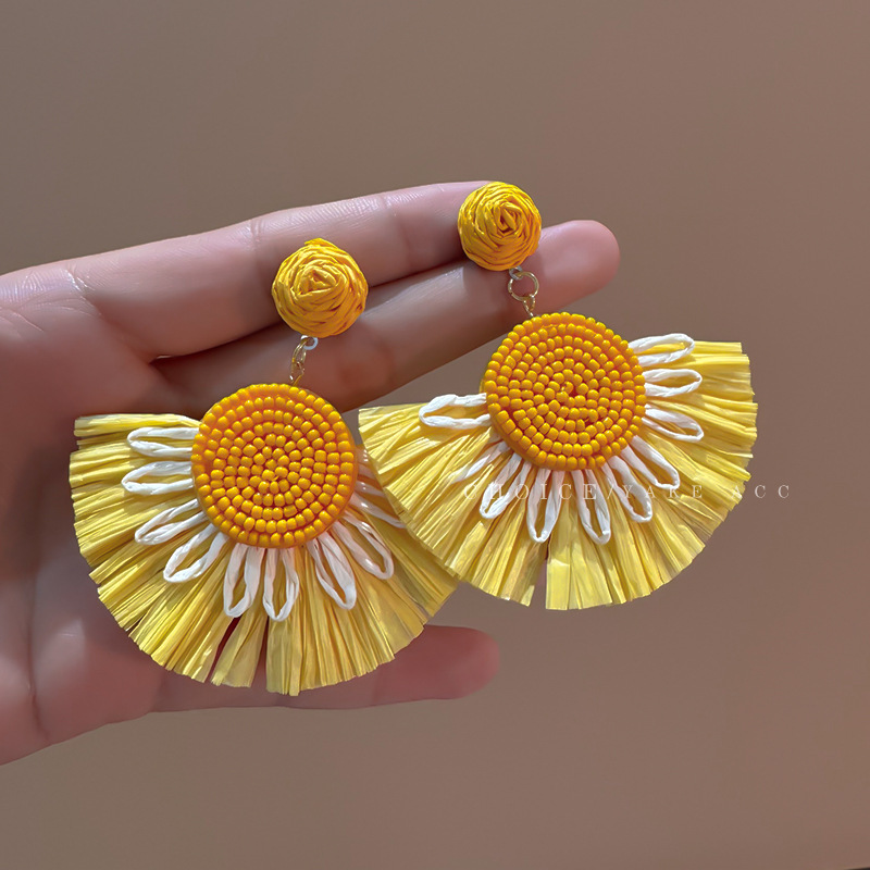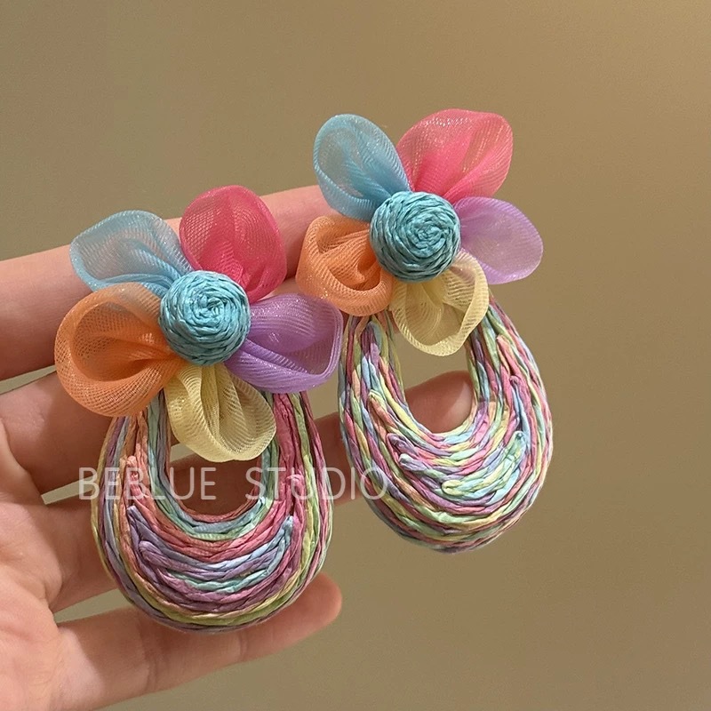 Color: Colorful straw flower earrings