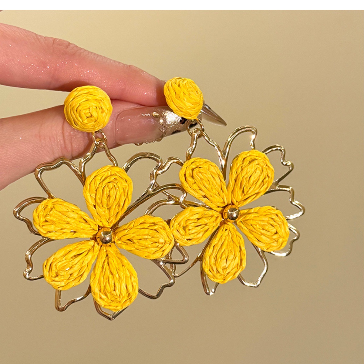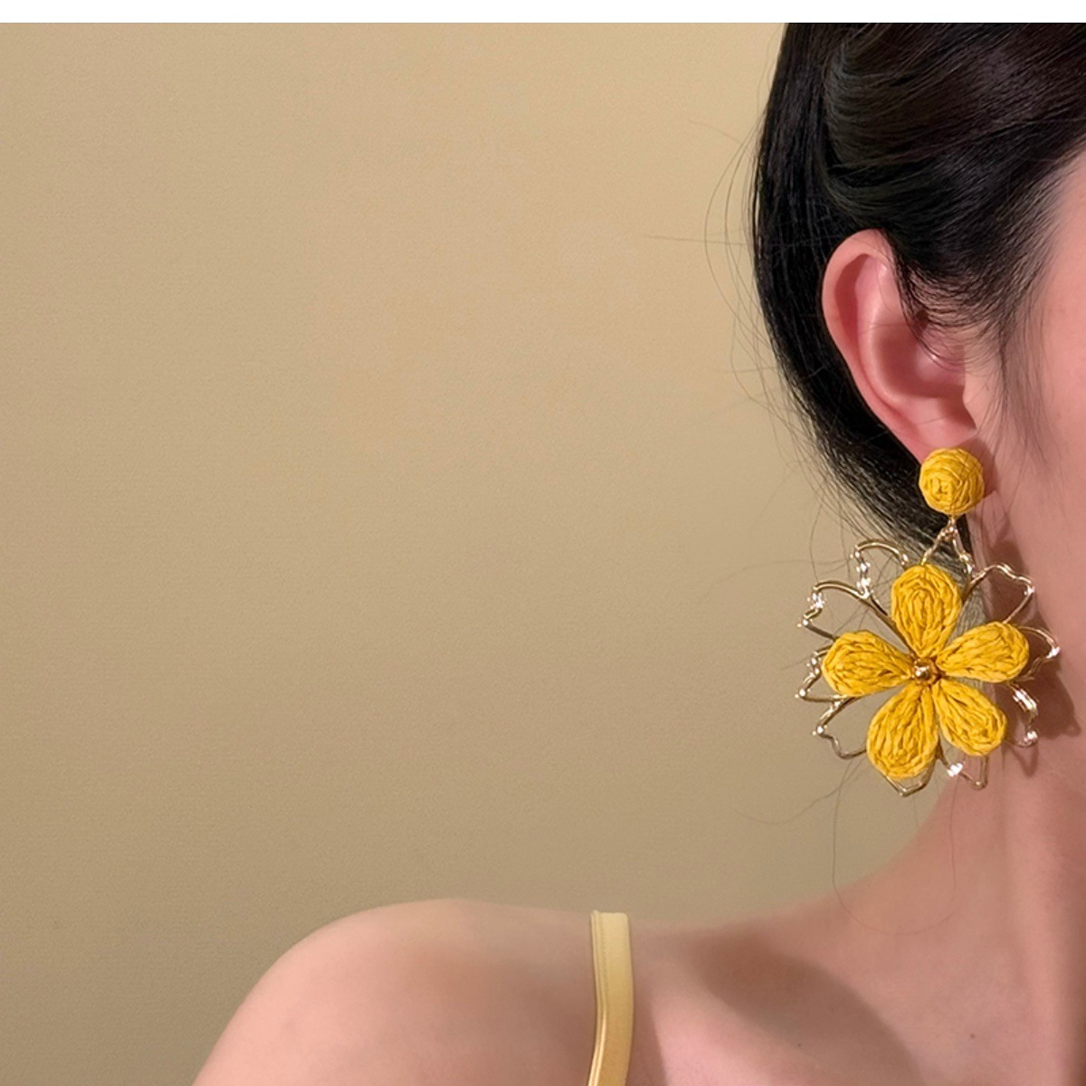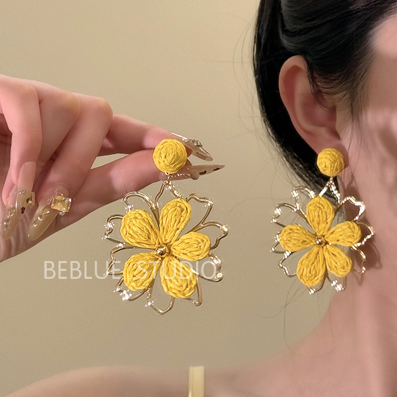 Color: A pair of yellow flower earrings