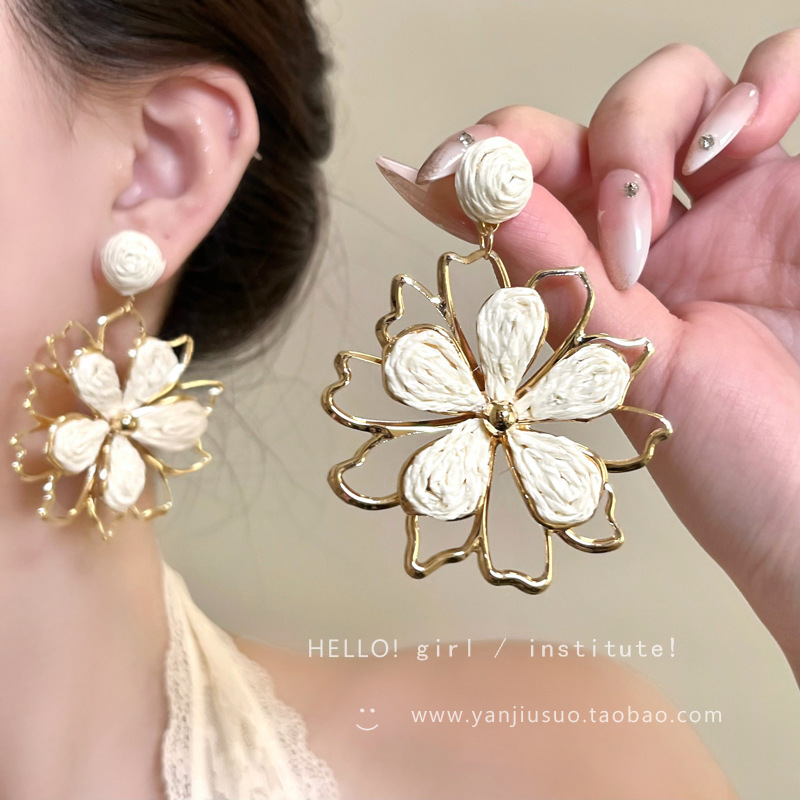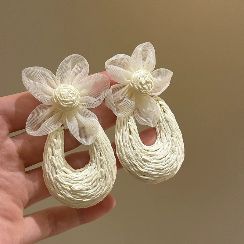 Color: White straw flower earrings
