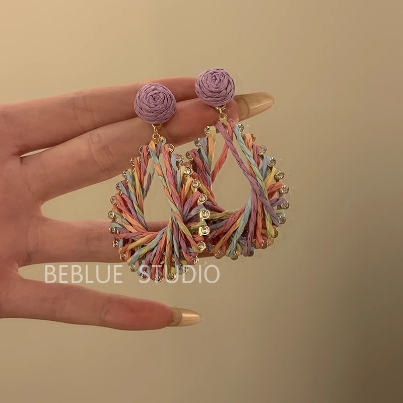 Color: Colorful braided pendant stud earrings