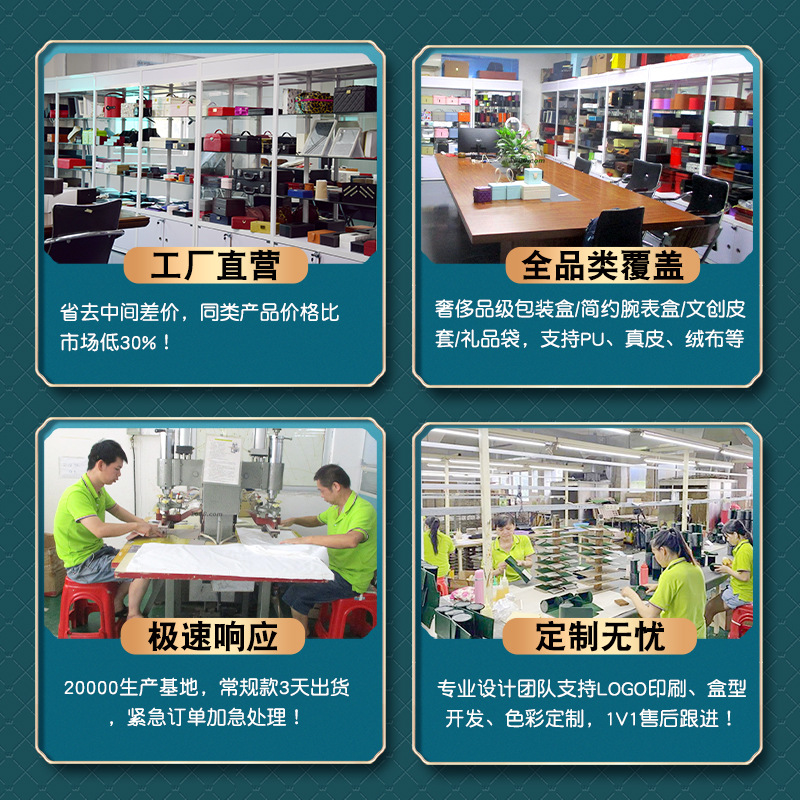 东莞市嘉联包装制品有限公司拥有皮具生产面积2000多平米,10年的皮具加工定制经验-获得皮具厂同行及市场认可,10年来致力于珠宝首饰盒 家居收纳工艺品 手表领带包装盒 化妆保健品包装 红酒盒包装等产品的加工定制,生产能力在皮具加工厂中更进一步。