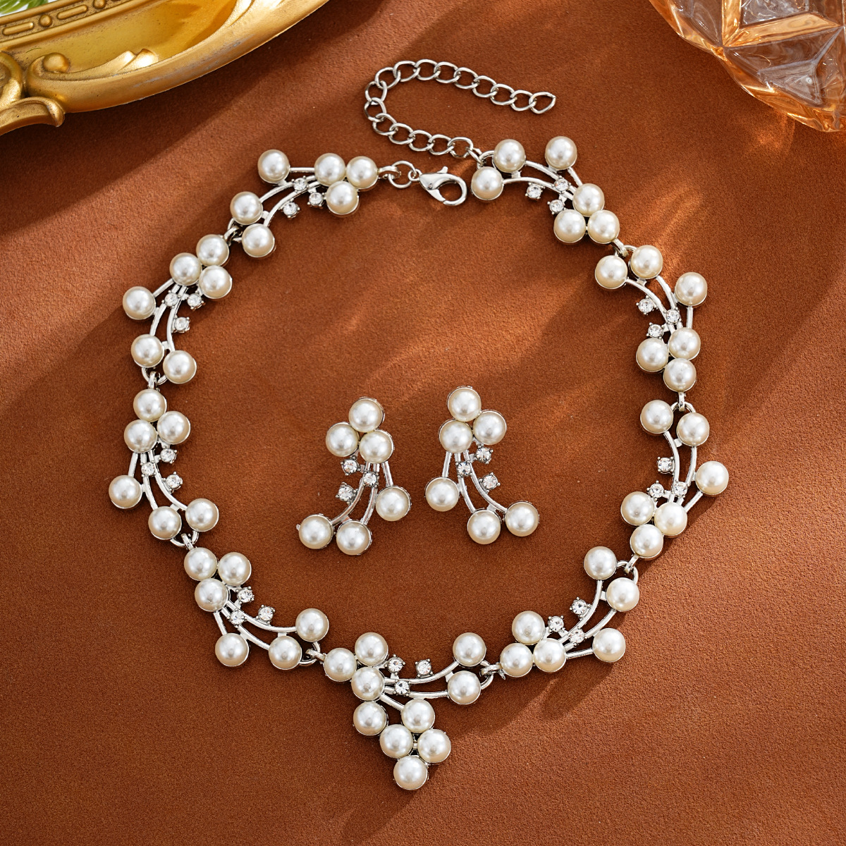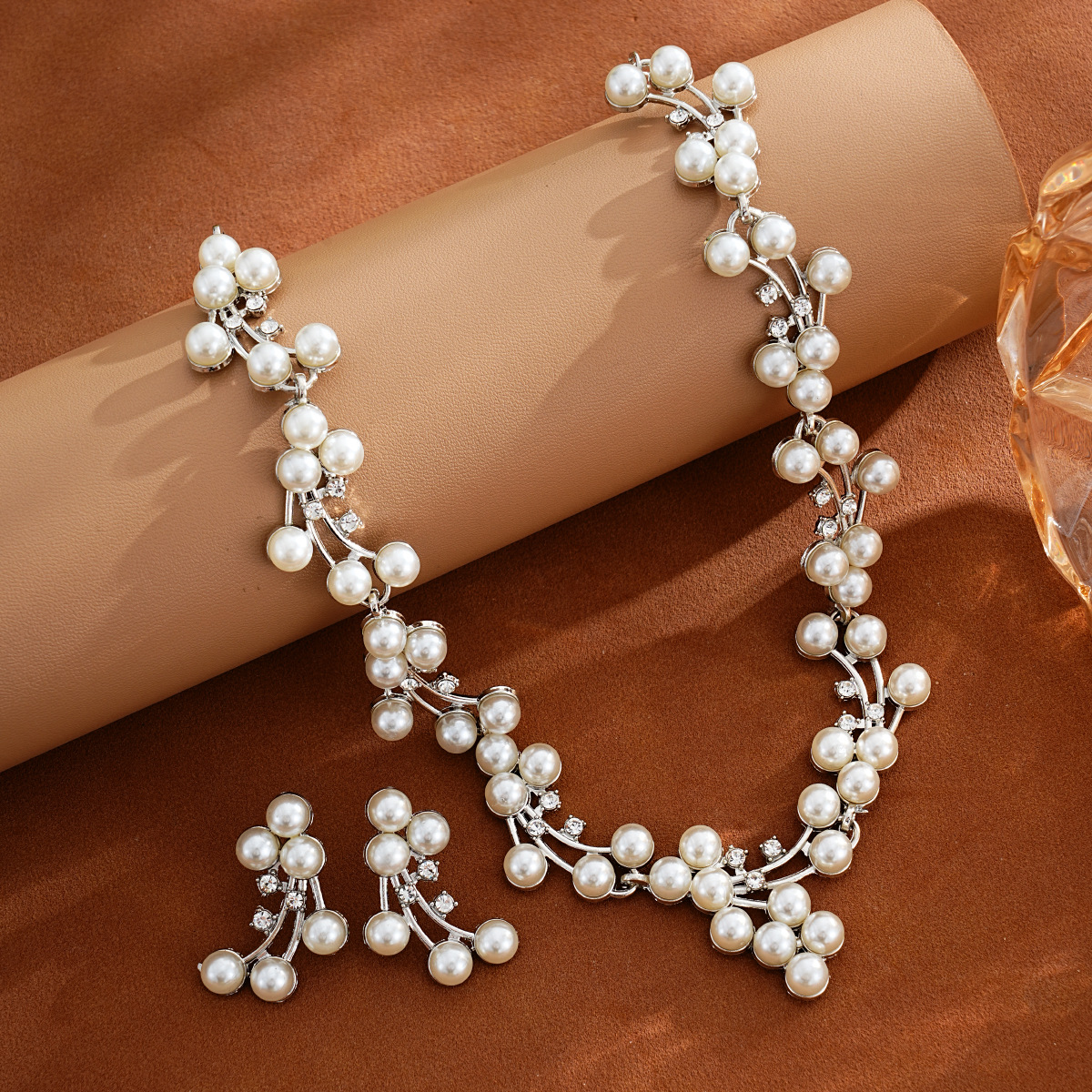 European and American Cross-Border Popular Earrings and Necklaces Two-Piece Luxury Bridal Wedding Dress Pearl Jewelry Set Wholesale