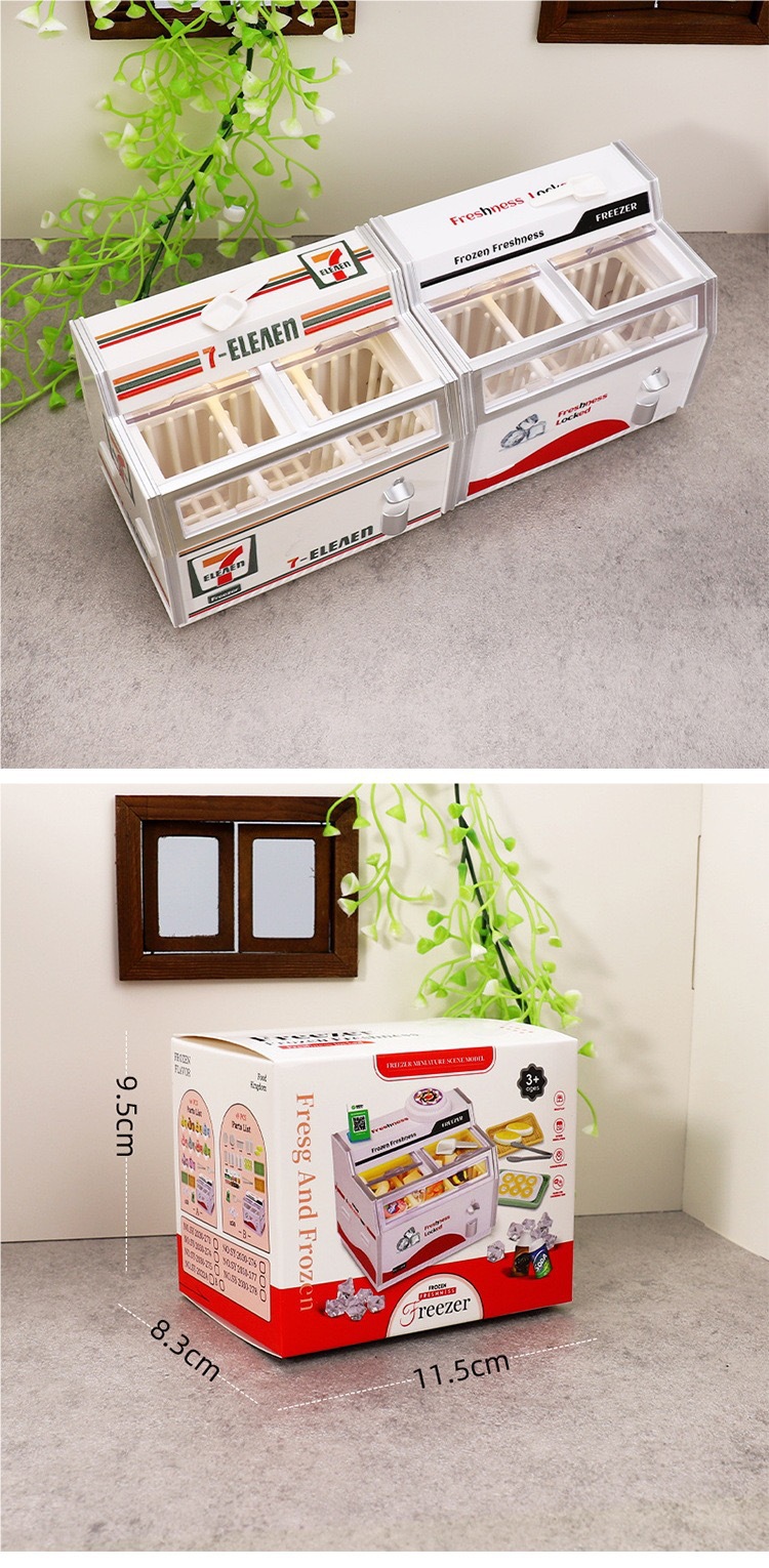 Dollhouse Mini Supermarket Miniature Horizontal Freezer Play House Ice Cream Cabinet Toy Ornaments Artificial Model Cross-Border