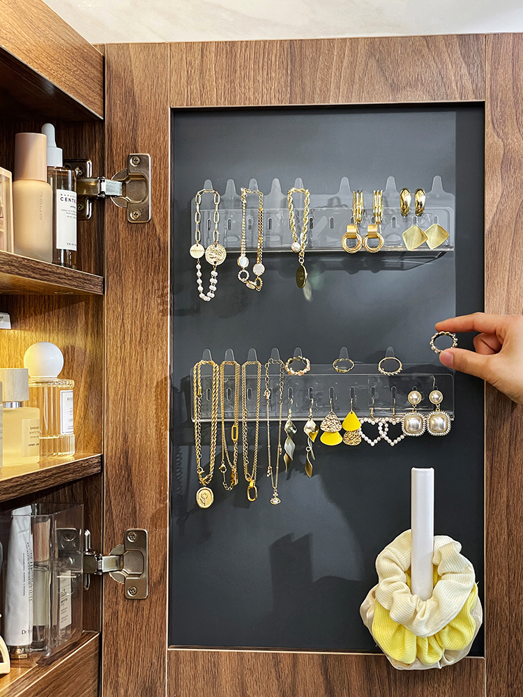 Mirror Cabinet Storage Box Behind the Door Washbasin Wall Hanging Jewelry Rack Bathroom Cabinet Bathroom Necklace Ring Earrings Storage Rack