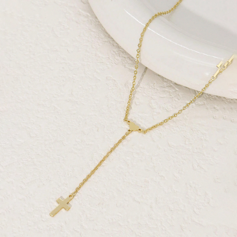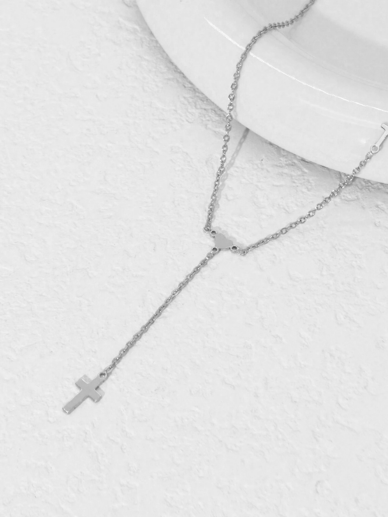 European and American Fashion Retro Cross-Border Simple Cross Love Stainless Steel Clavicle Chain Fashion Personality Women's Necklace