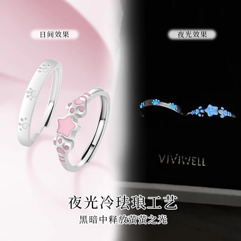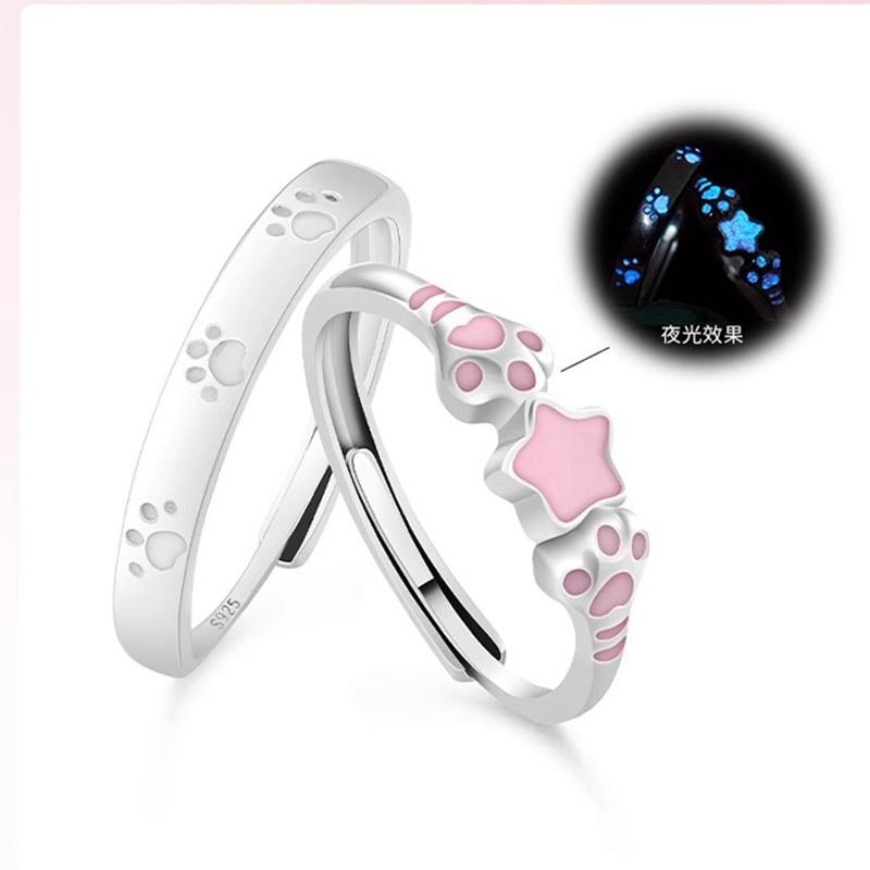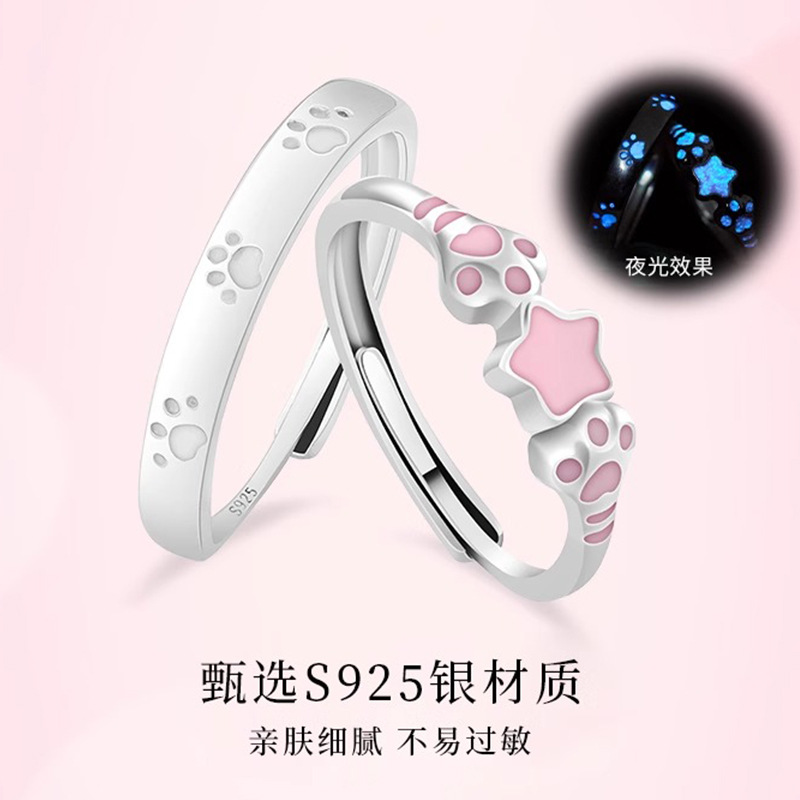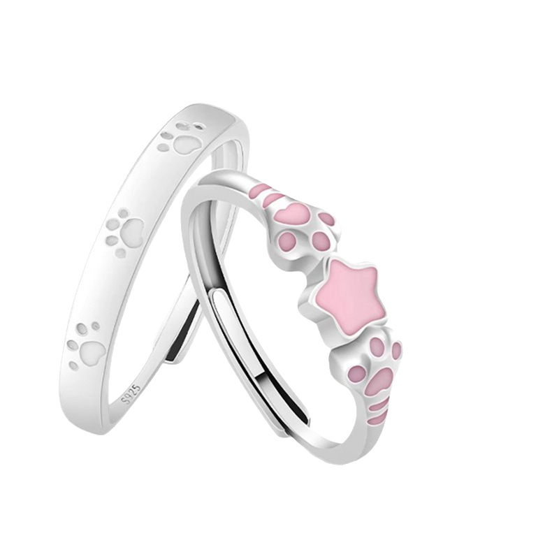 S925 Sterling Silver Cute Cat Claw Cute Kitten Claw Couple Ring Fashionable Versatile Elegant Personalized High-End Ring