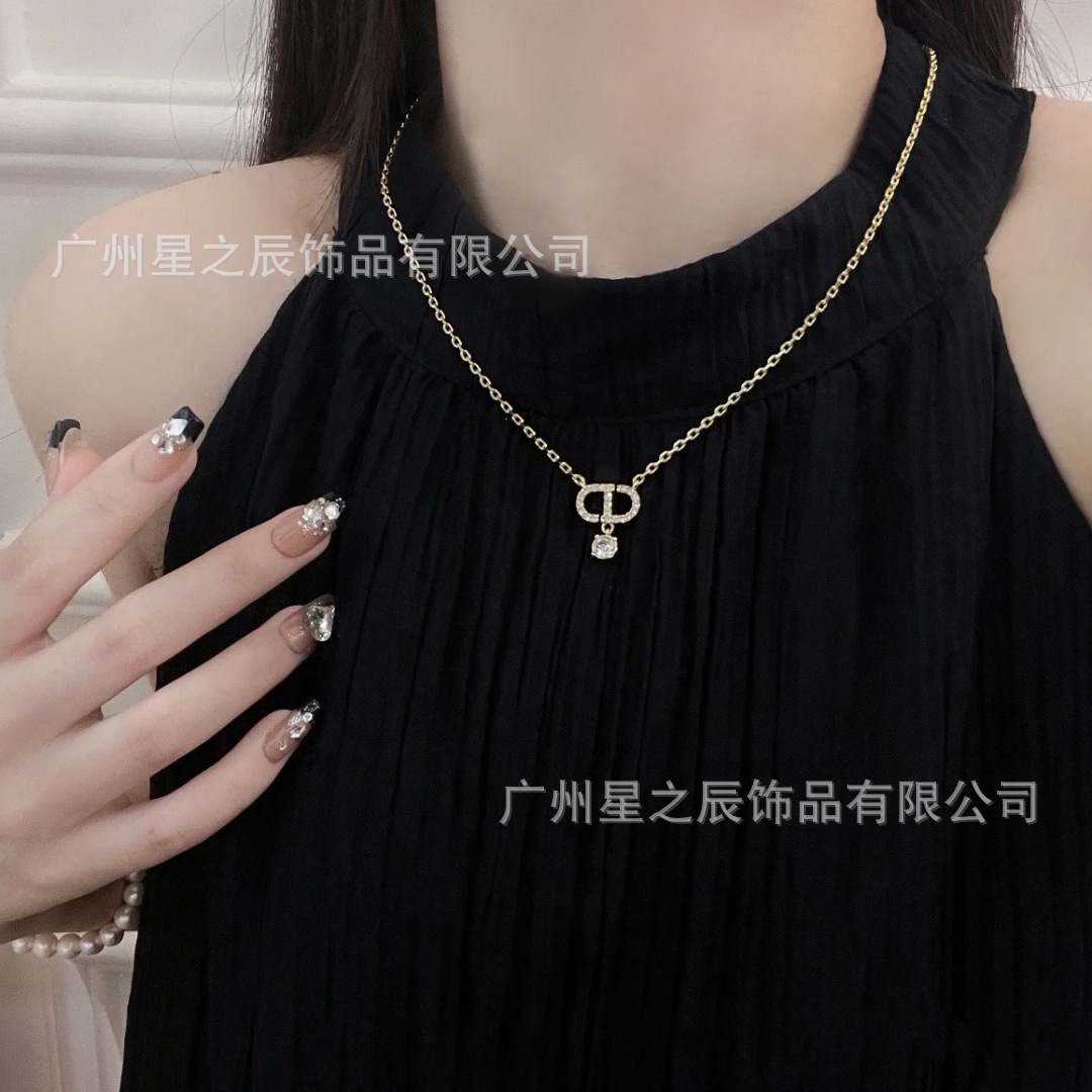 Real Shot of D&G Letter Cd Full Diamond Pig Nose White Diamond Set Necklace Women's Fashion Earrings Women's Factory Wholesale