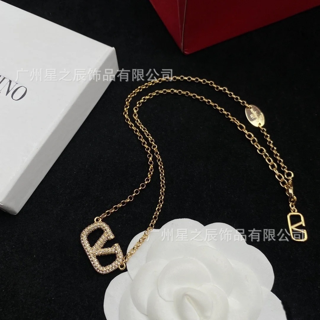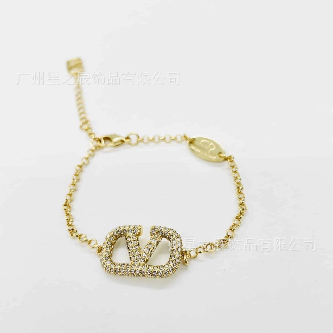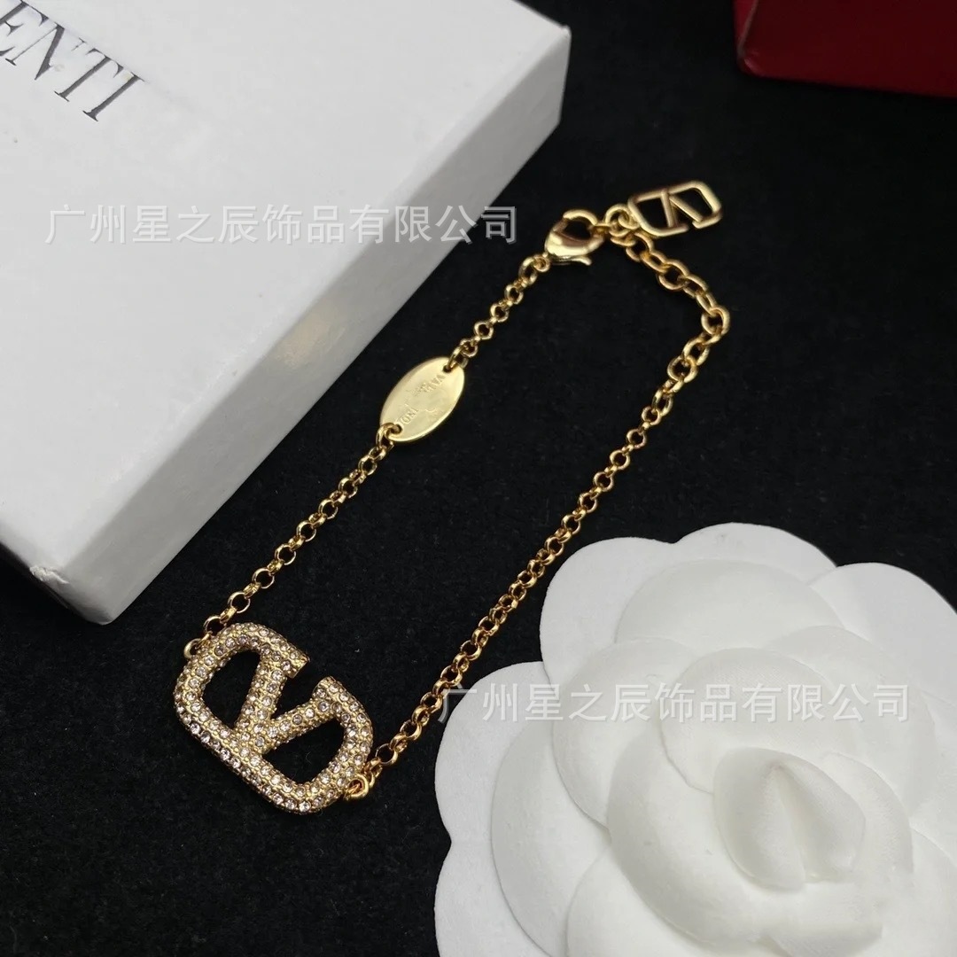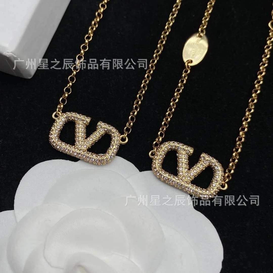 Real Shot of Valentine's Letter V Full Diamond Gold Suit Necklace Women's Fashion High-End Bracelet Women's Wholesale