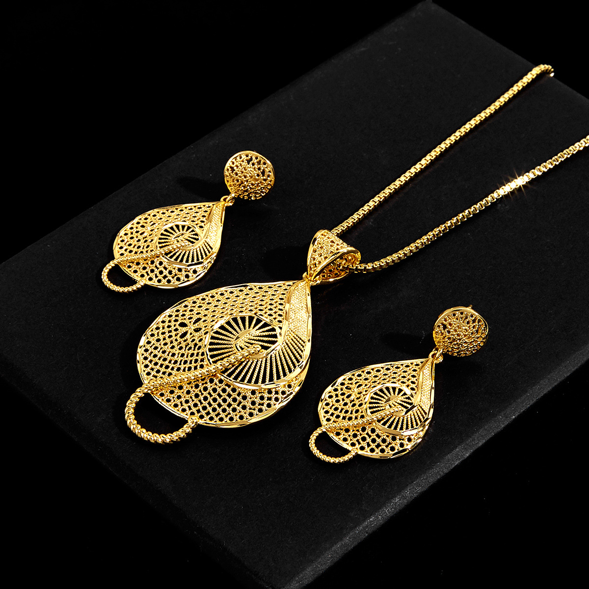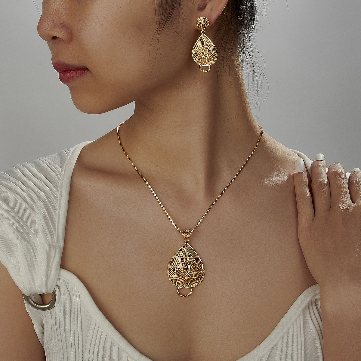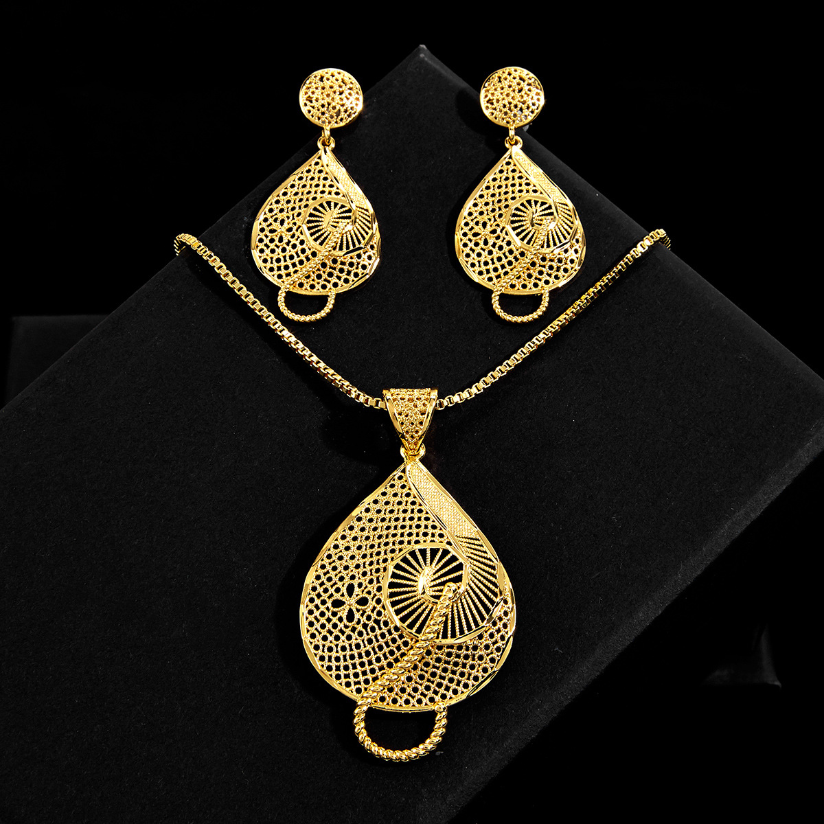 Middle East Dubai Bride Original Personalized Large Pendant Necklace Earrings High Quality Copper Neck Necklace Earrings Wedding Jewelry Set