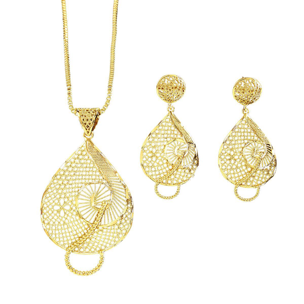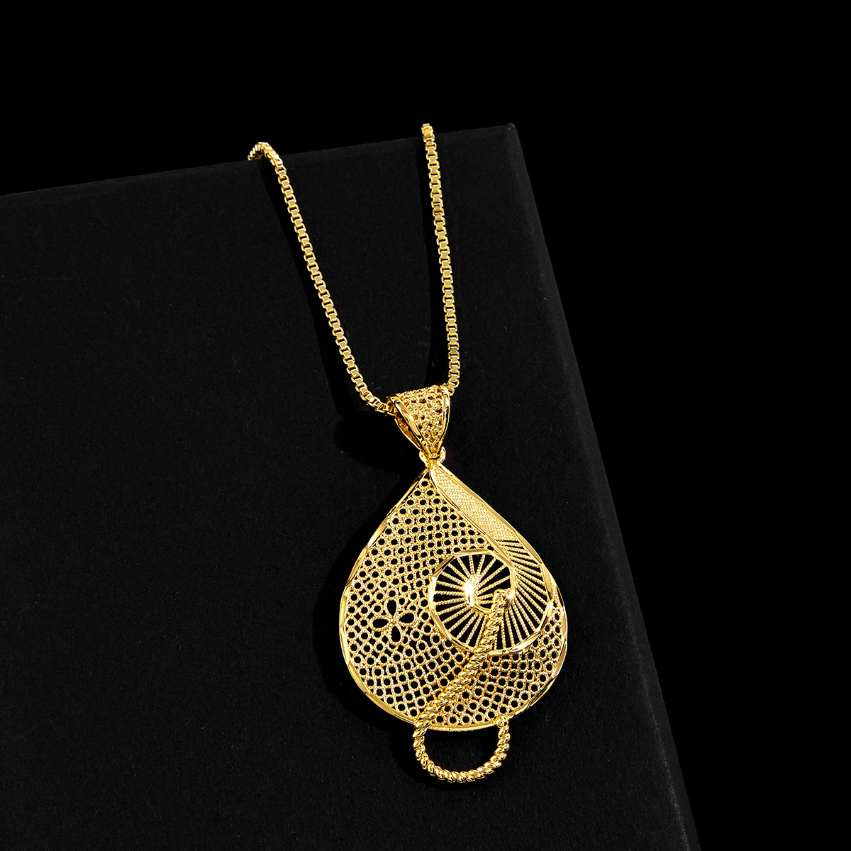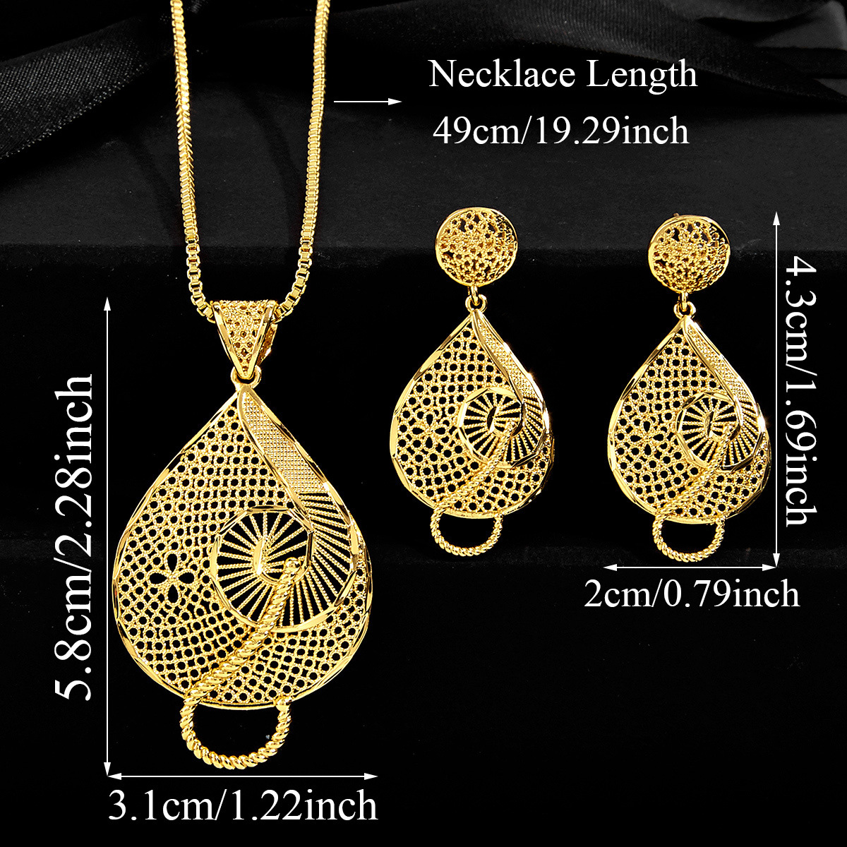 Middle East Dubai Bride Original Personalized Large Pendant Necklace Earrings High Quality Copper Neck Necklace Earrings Wedding Jewelry Set