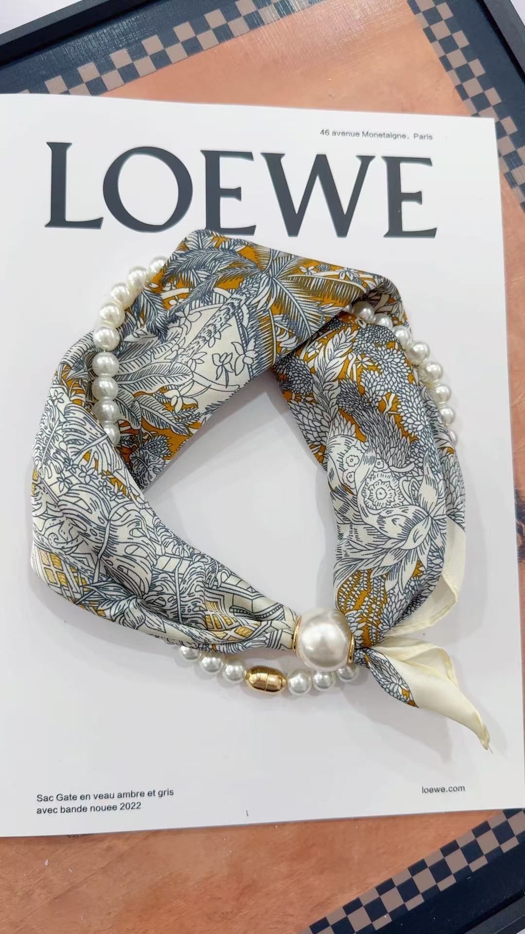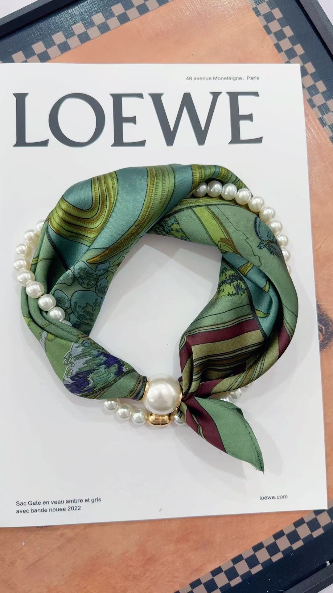 Color: 27#Green edge leopard print + pearl magnetic buckle necklace