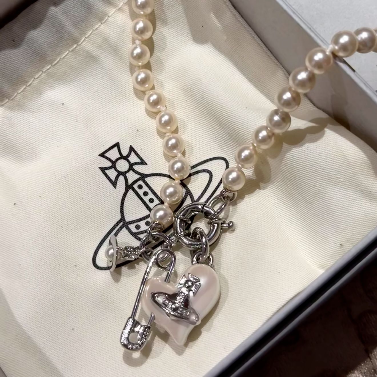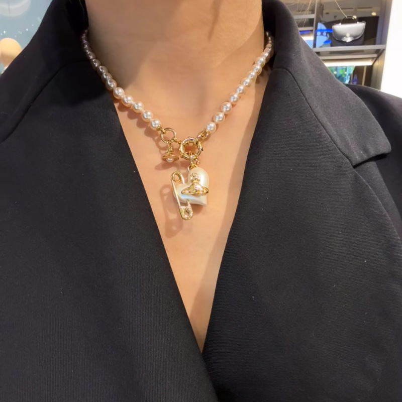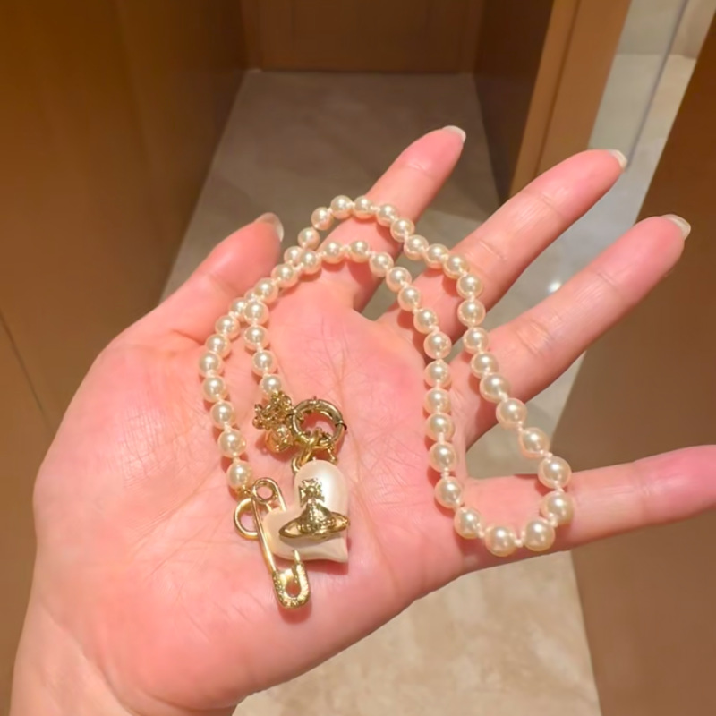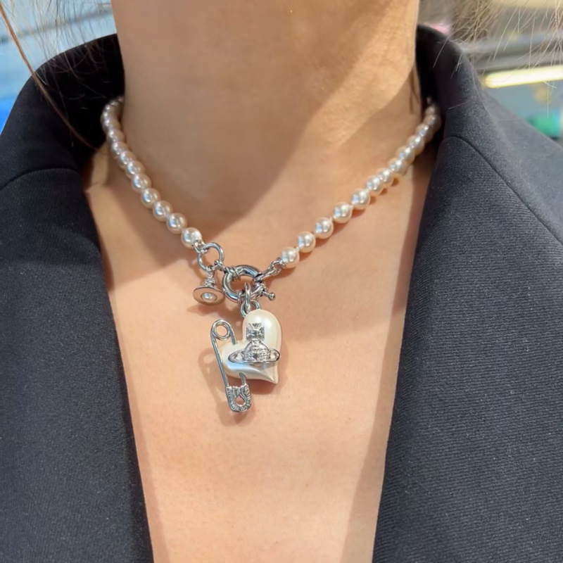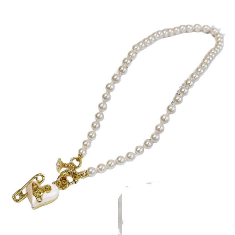Vivian Saturn Pearl Love Pin Irregular Necklace Women's French Retro Niche Peach Heart Clavicle Chain