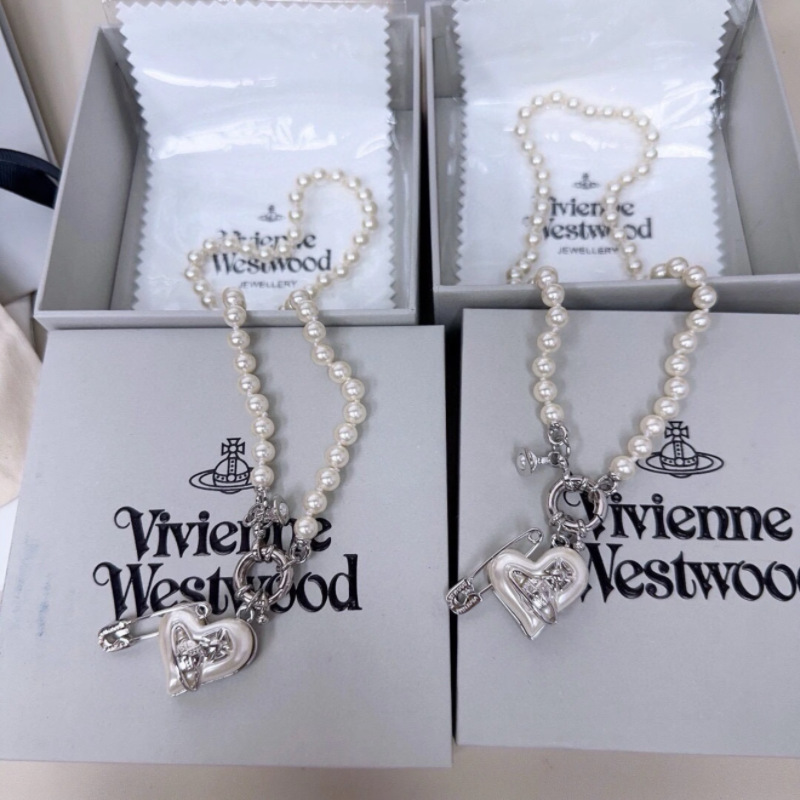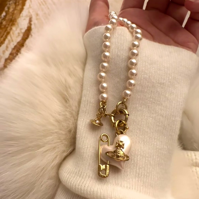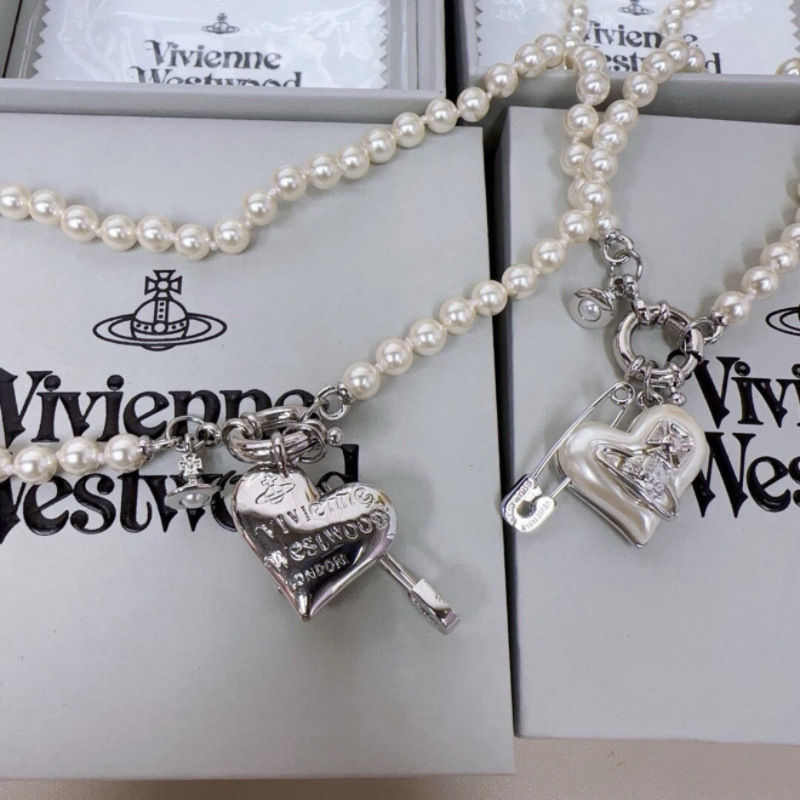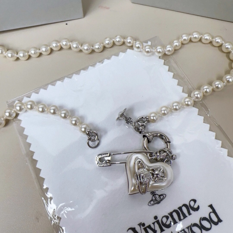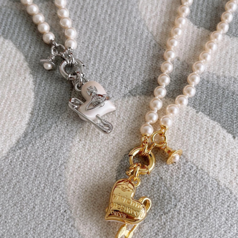 Vivian Saturn Pearl Love Pin Irregular Necklace Women's French Retro Niche Peach Heart Clavicle Chain