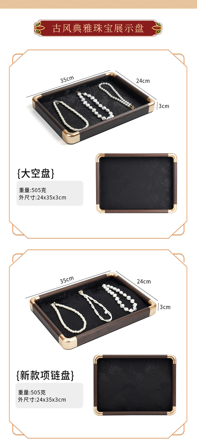 In-Stock Antique-Style Jewelry Display Tray for Necklaces, Rings, Jewelry Viewing Tray, Accessories, Watches, Glasses, Solid Wood Display Tray