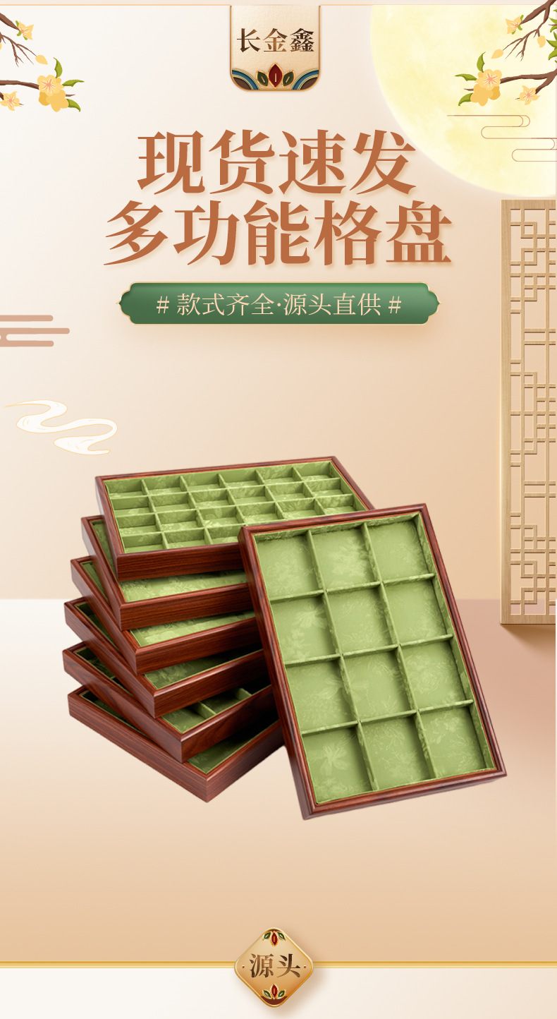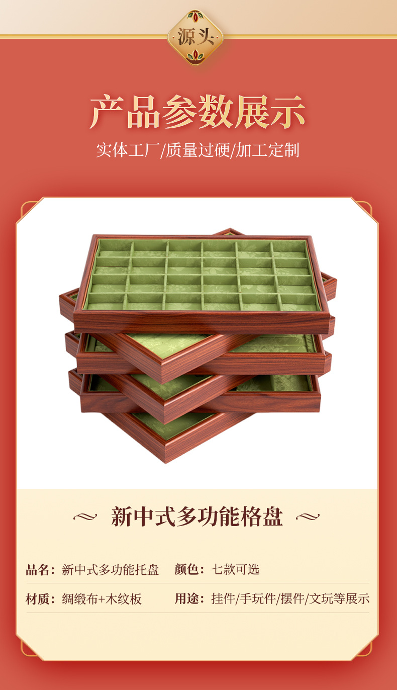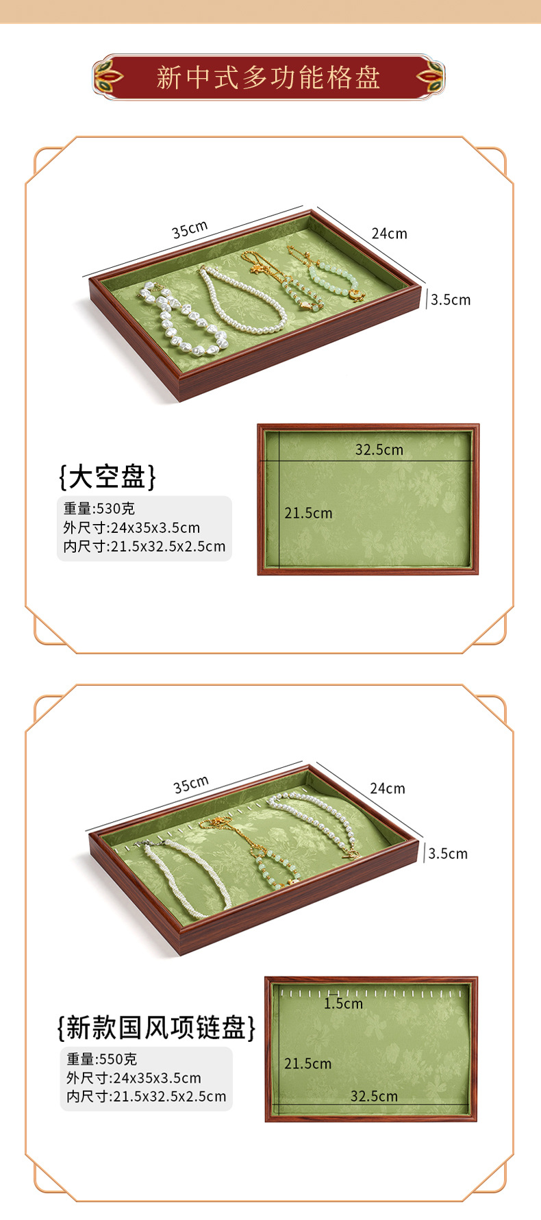 In-Stock New Chinese-Style Jewelry Tray for Rings, Necklaces, Bracelets, Display Tray for Cultural and Artistic Items, Solid Wood Display and Storage Tray