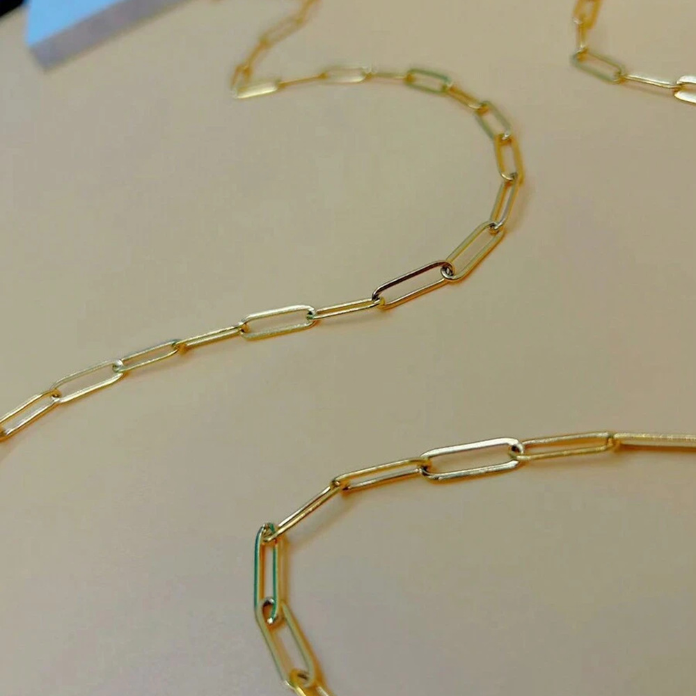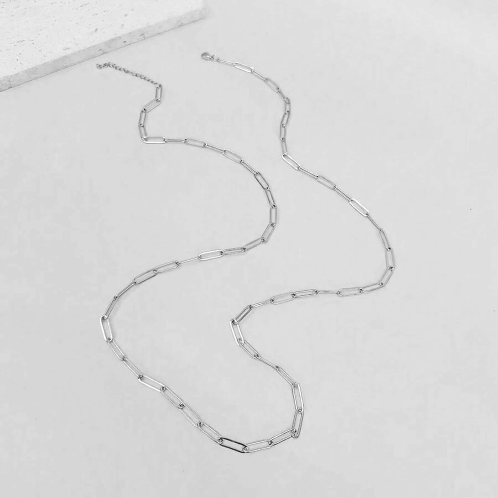 Minimalist Korean and Japanese Style Stainless Steel Long O-Chain Necklace Unisex Geometric Square Paperclip Men's Necklace