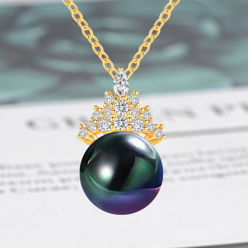Color: X18 model [12mm colorful black shell beads] gold pendant/without chain