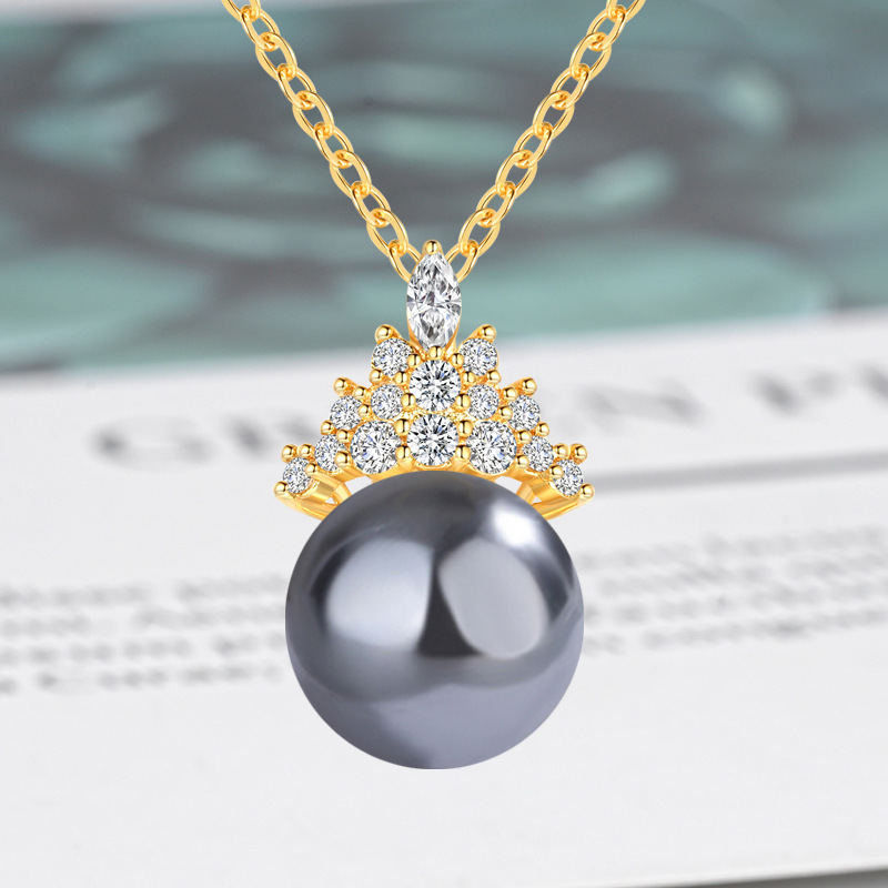 Color: X18 model [12mm dark gray shell beads] gold pendant/without chain